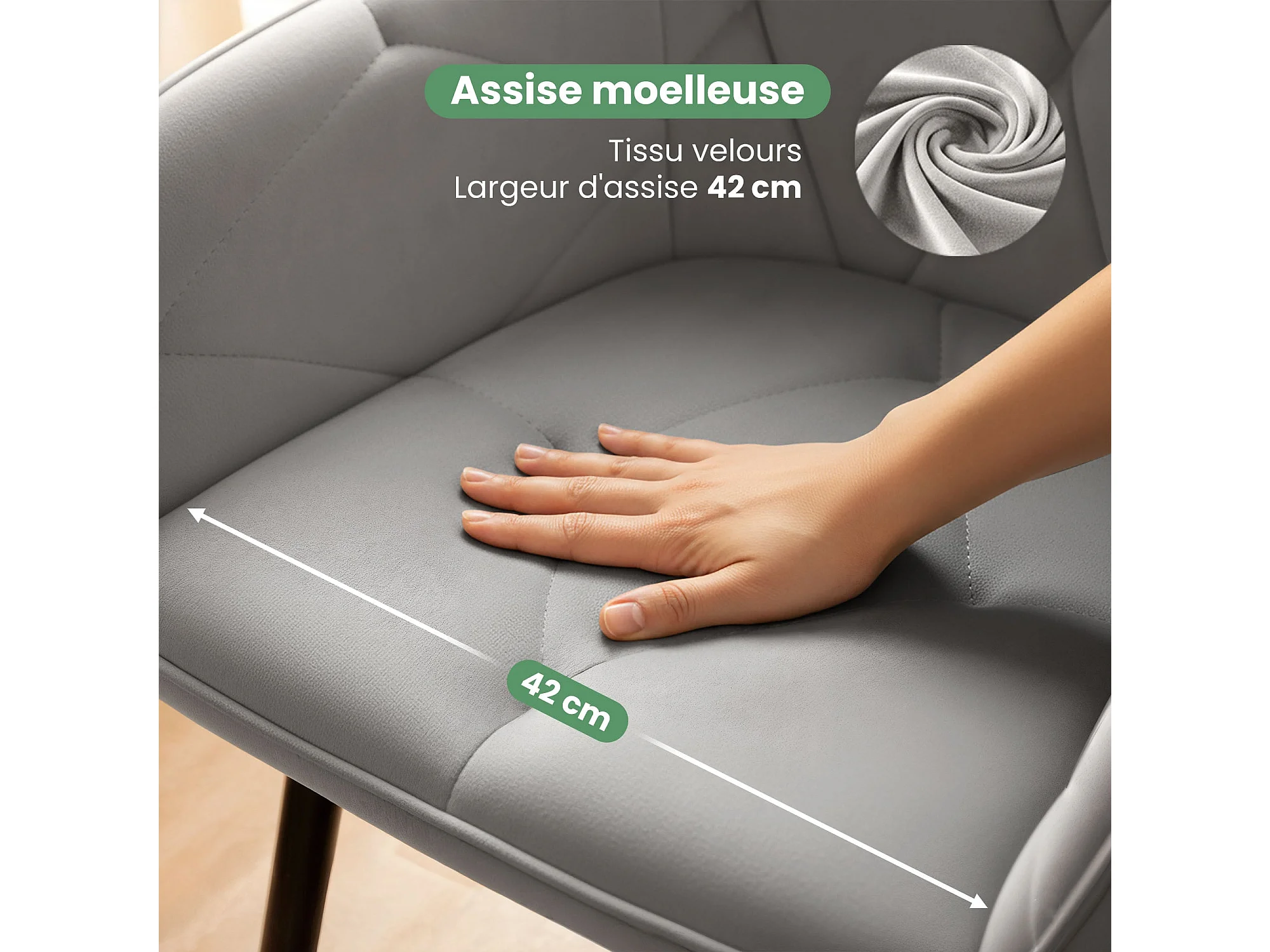 Lot de 2 Chaises en velours matelassées DIAMANTE Gris pieds noirs