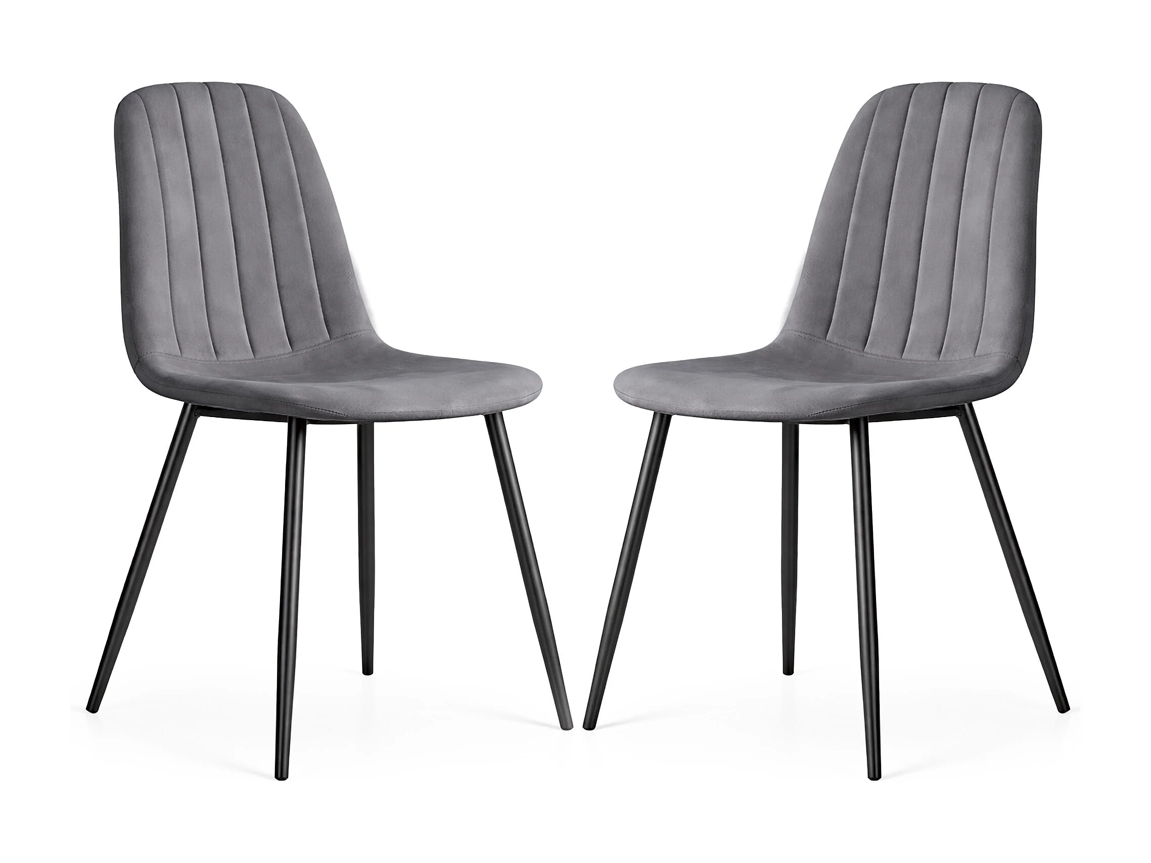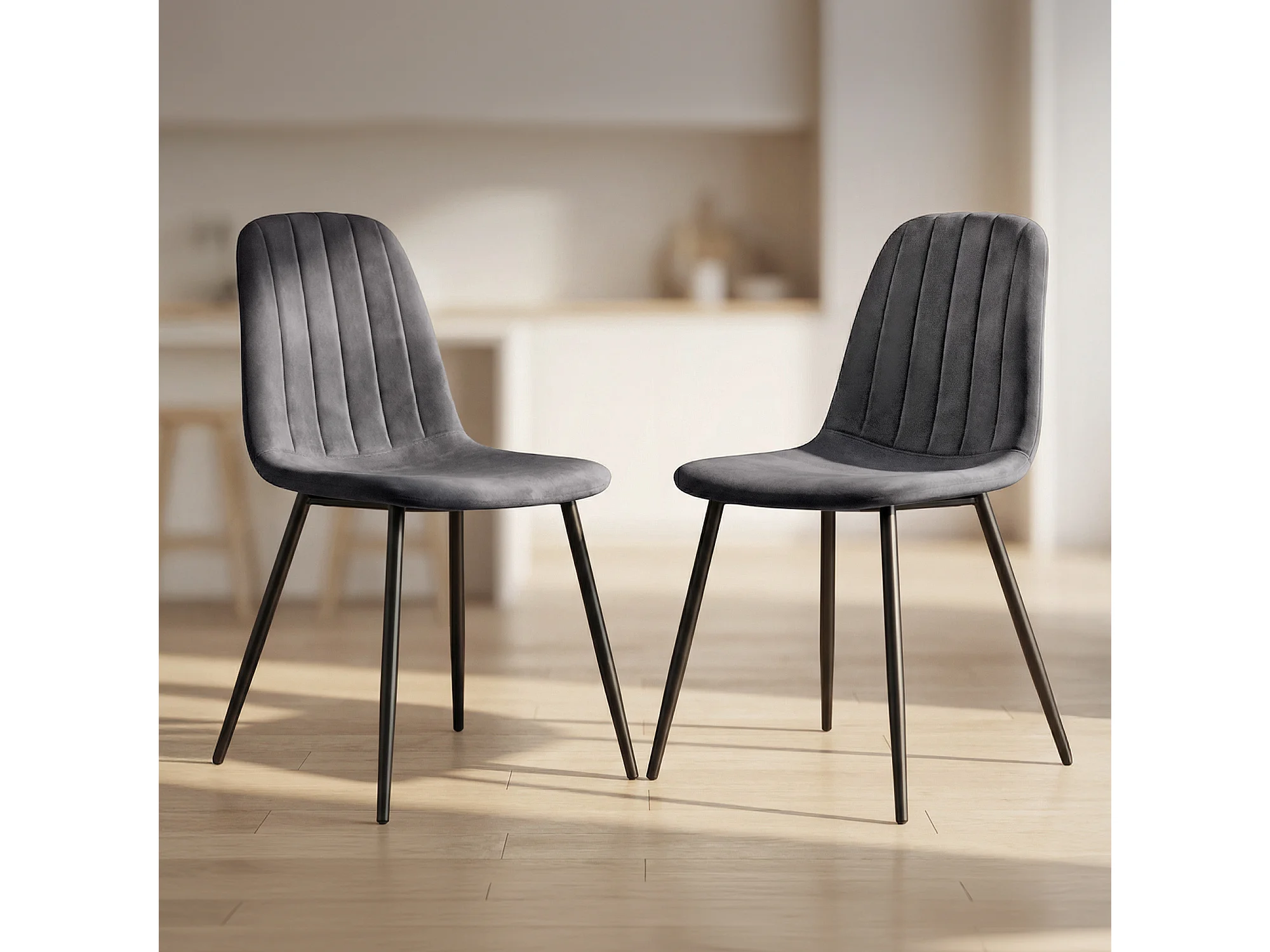 Lot de 2 Chaises en velours matelassées LUMO Graphite Foncé pieds noirs