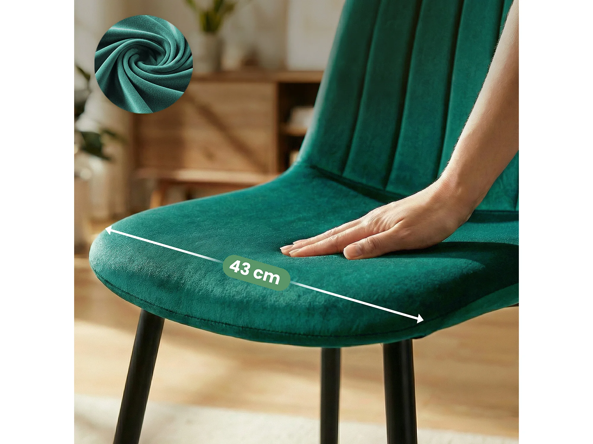 Lot de 2 Chaises en velours matelassées LUMO Vert Bouteille pieds noirs