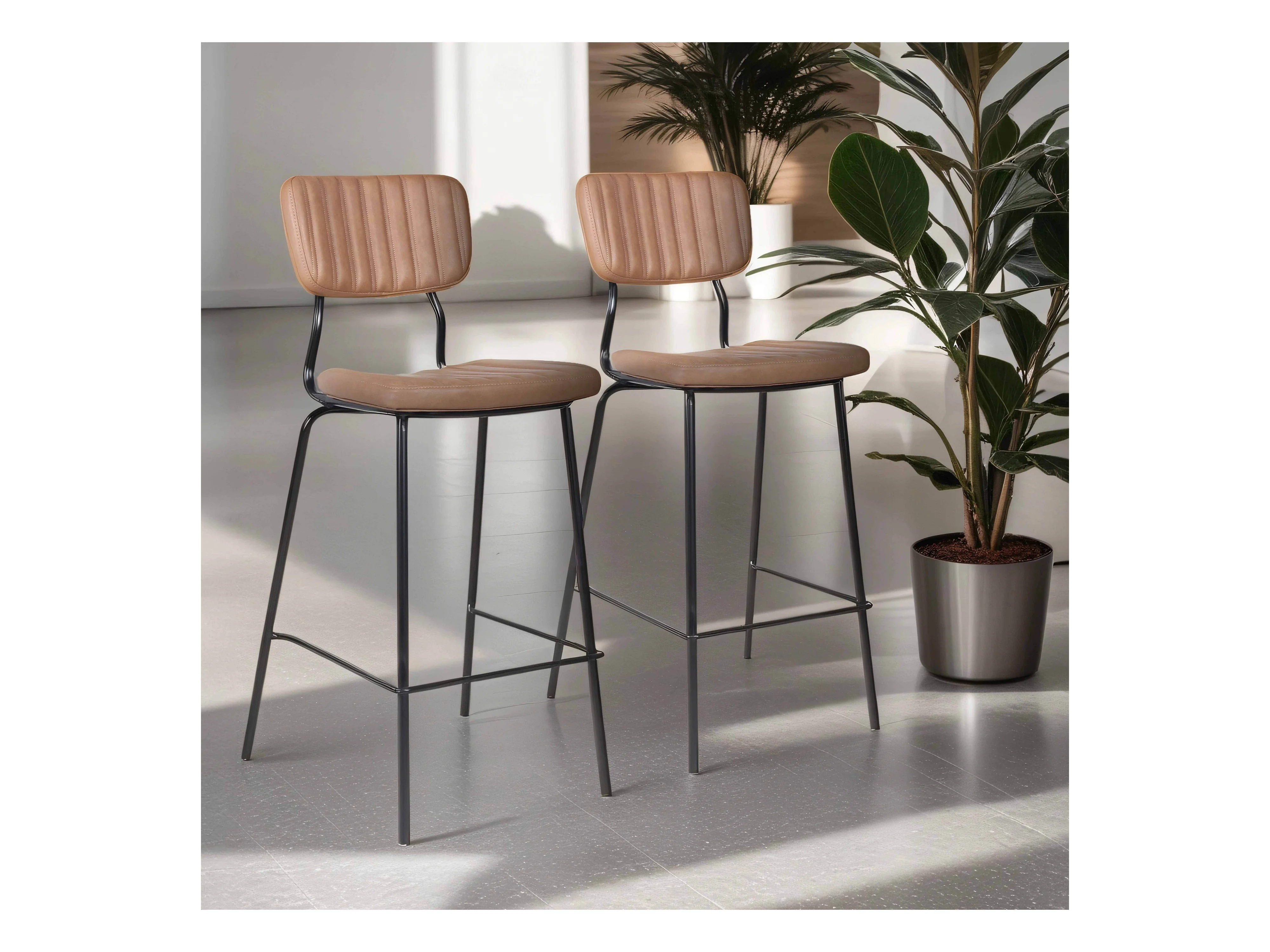 Lot de 2 tabourets hauts en textile enduit marron clair