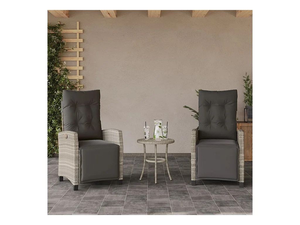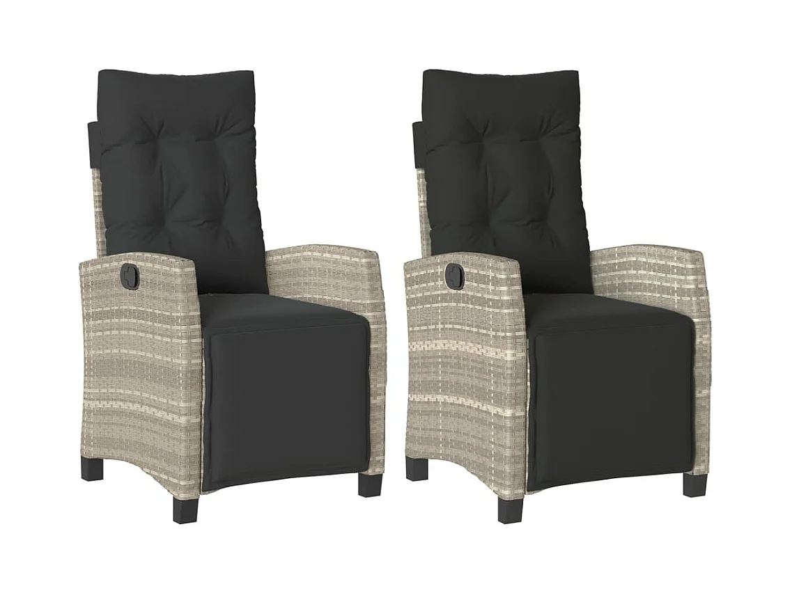 Lot de 2 Chaises inclinables de jardin et coussins gris rotin FR41062