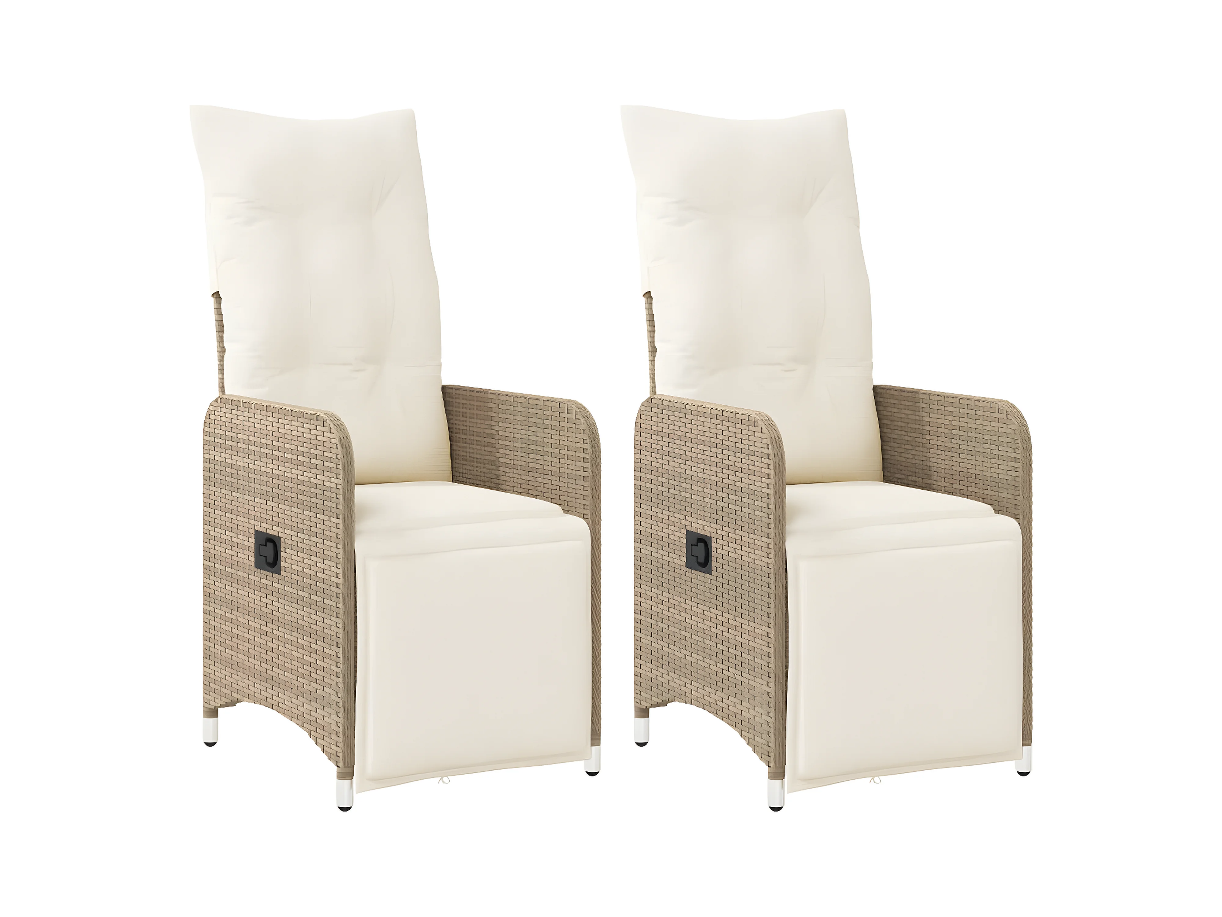Lot de 2 Chaises inclinables de jardin et coussins beige rotin FR45960