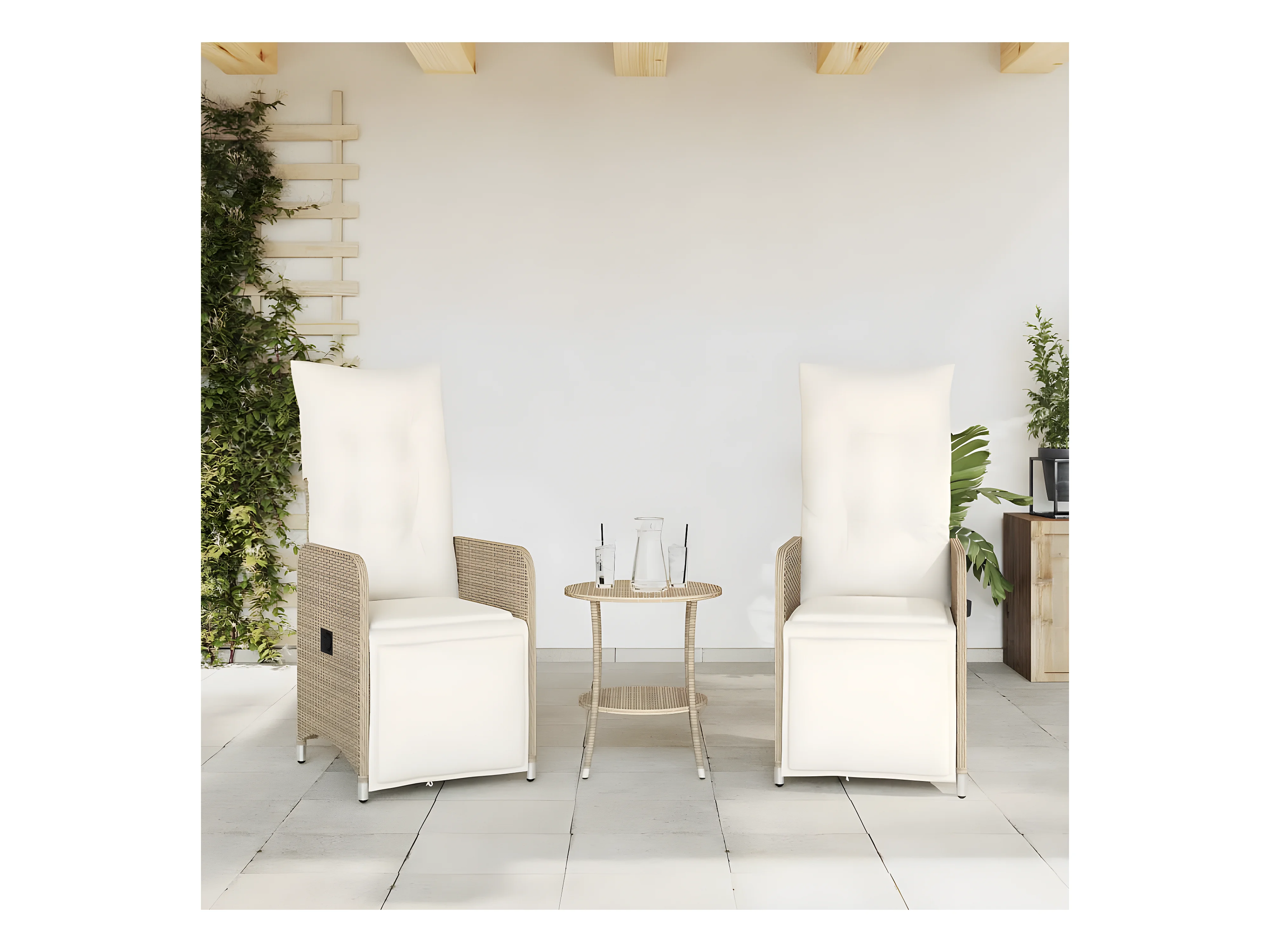 Lot de 2 Chaises inclinables de jardin avec table beige rotin FR18185
