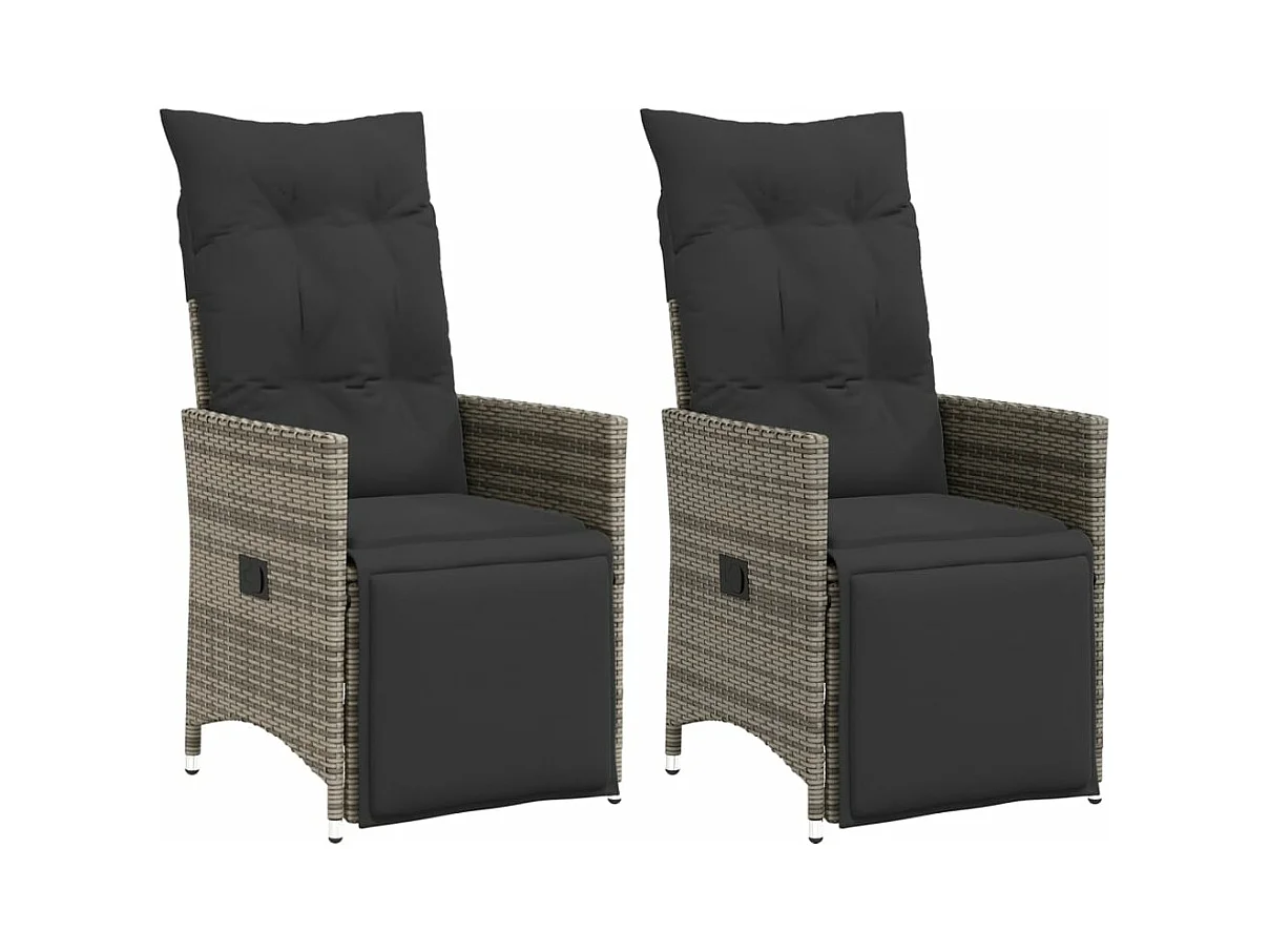 Lot de 2 Chaises inclinables de jardin et coussins gris rotin FR41062
