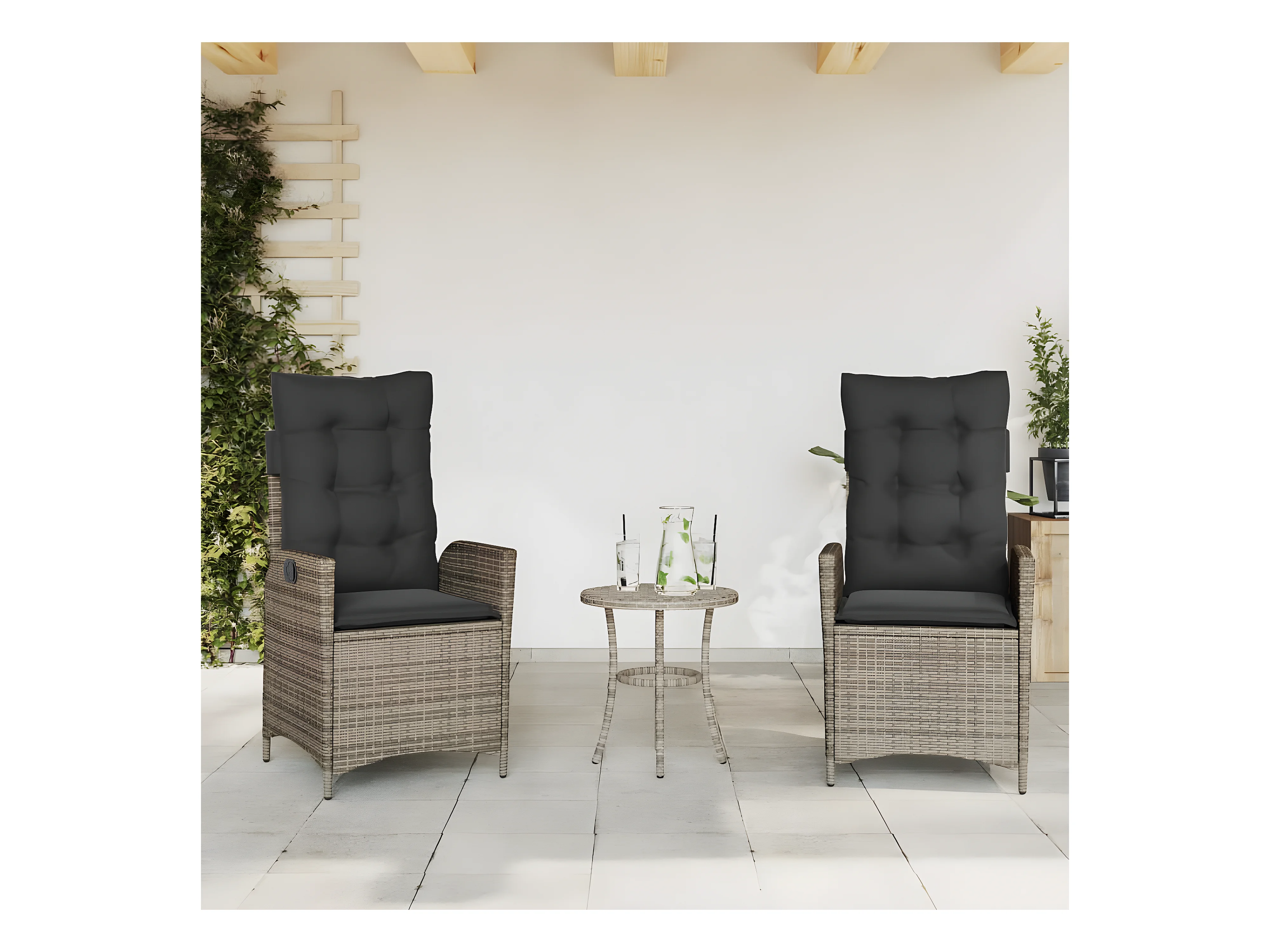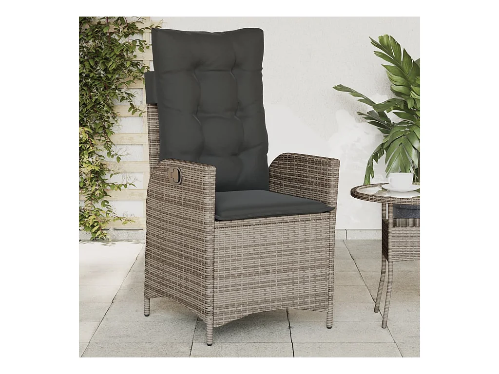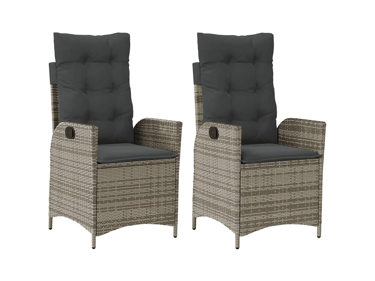 Lot de 2 Chaises inclinables de jardin et coussins gris rotin FR41062