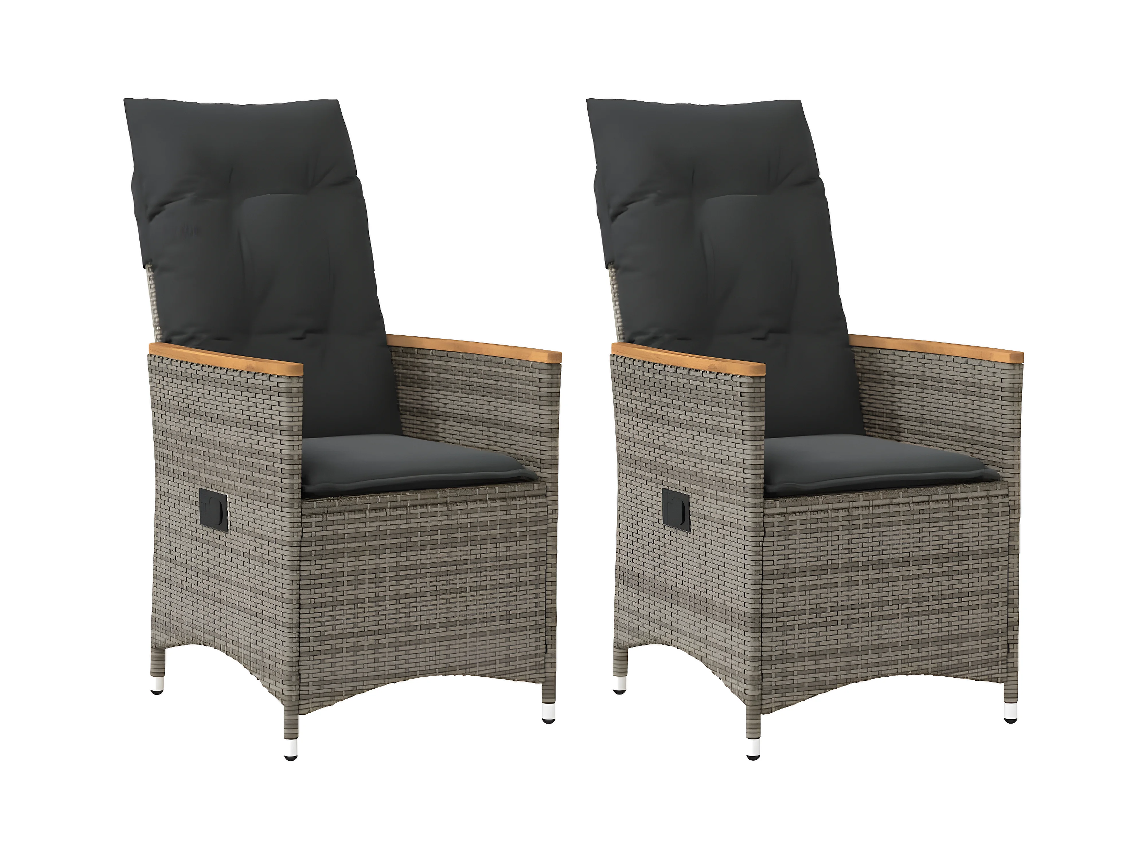 Lot de 2 Chaises inclinables de jardin et coussins gris rotin FR63065