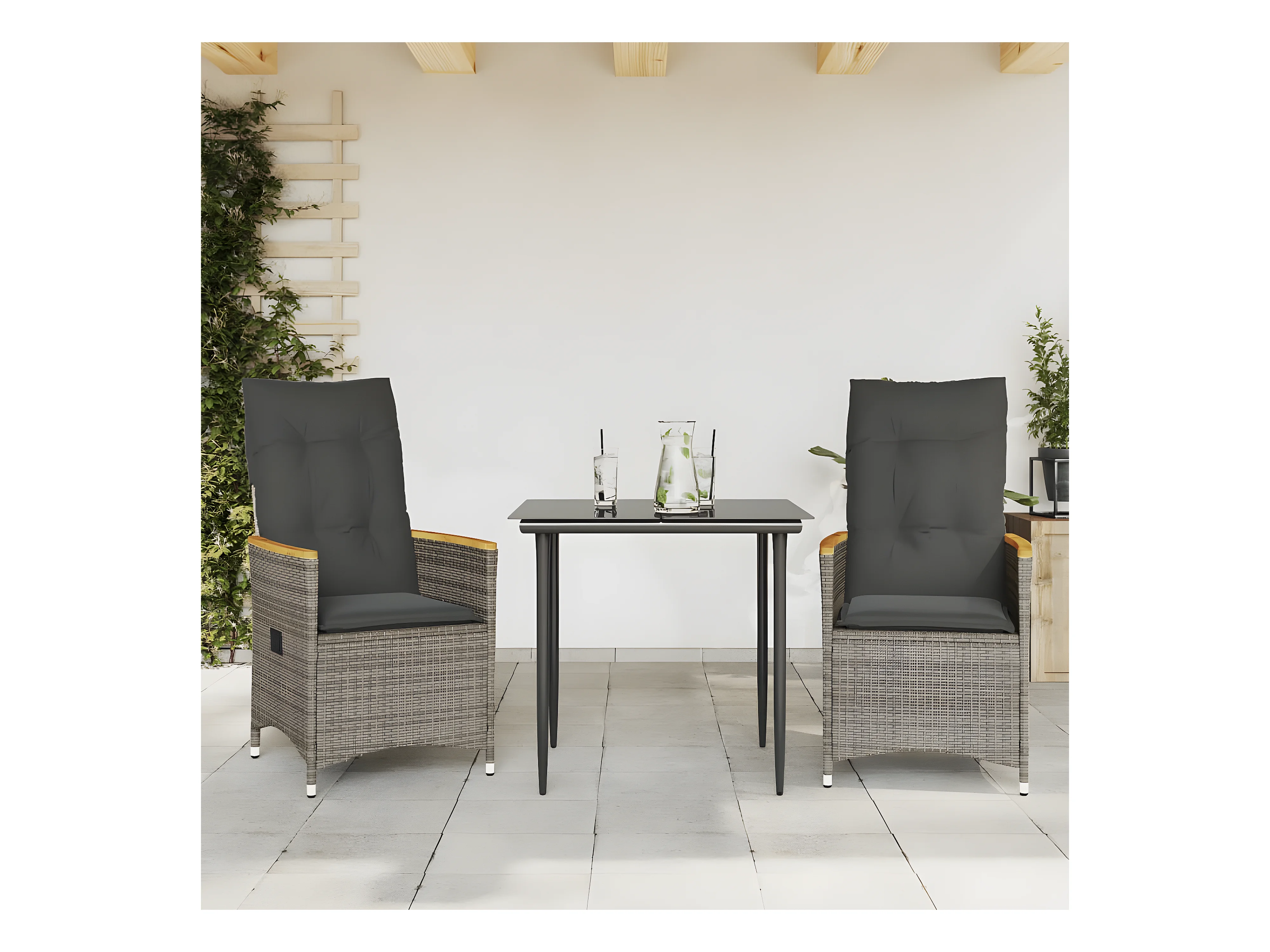 Lot de 2 Chaises inclinables de jardin et coussins gris rotin FR17804