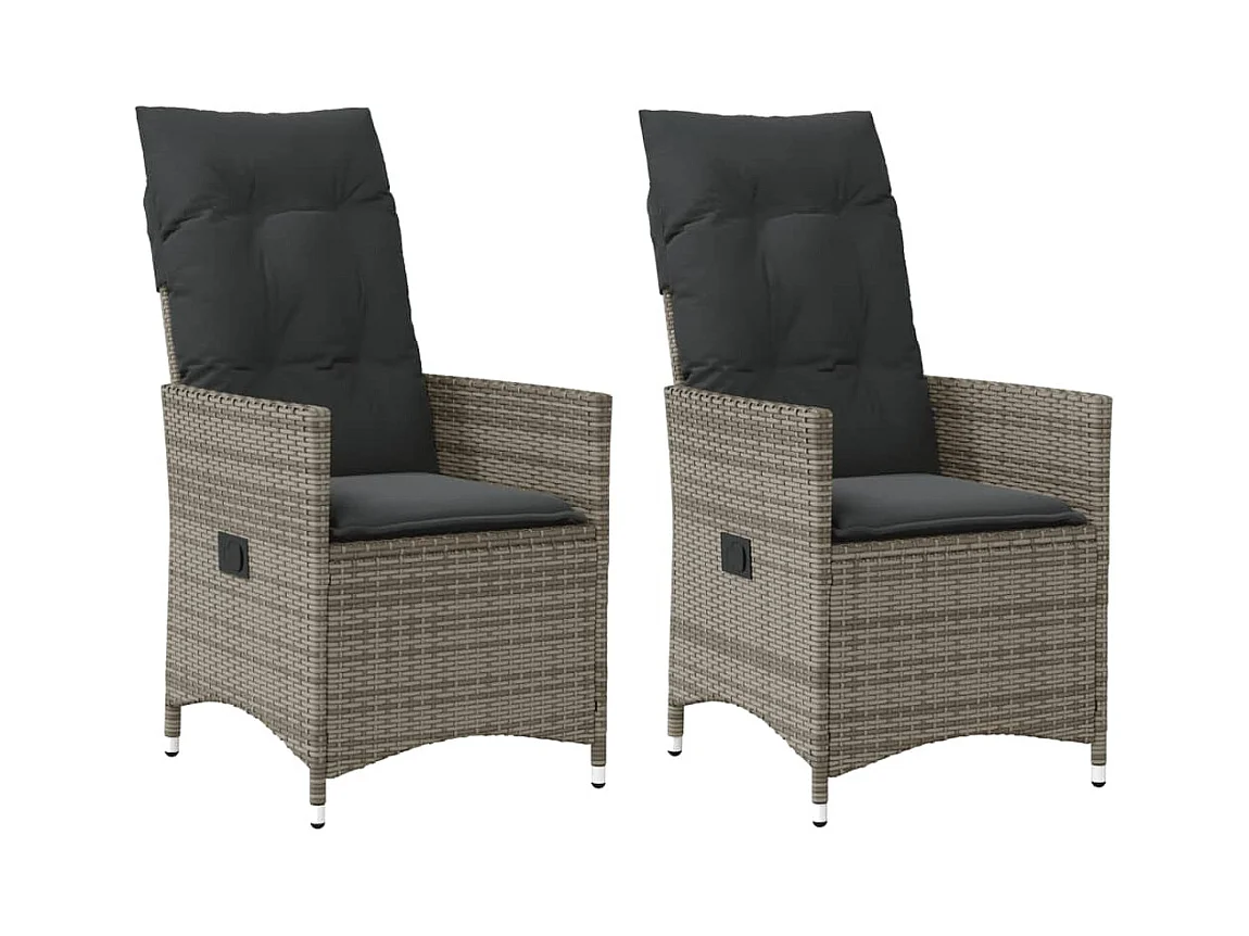 Lot de 2 Chaises inclinables de jardin et coussins gris rotin FR41062