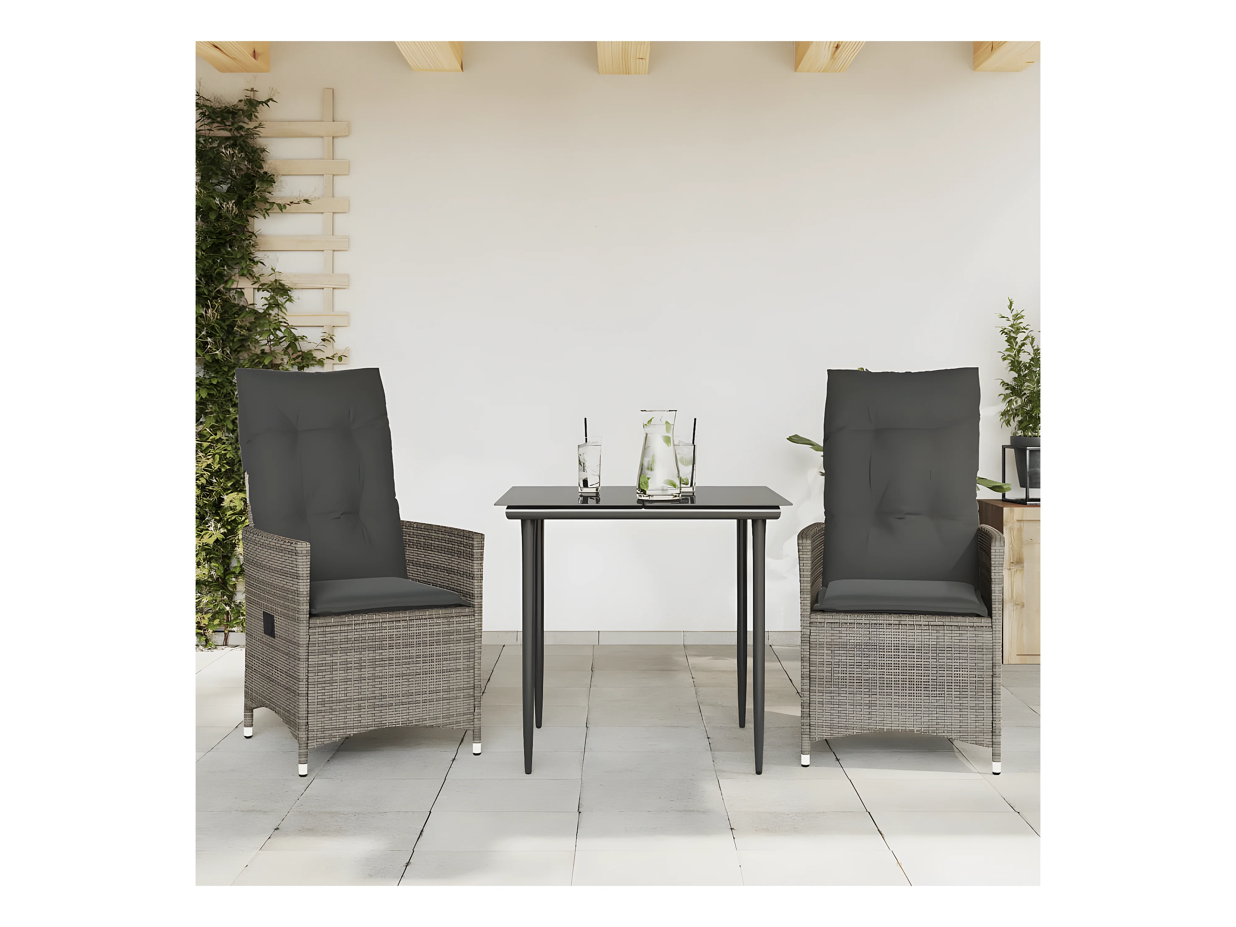 Lot de 2 Chaises inclinables de jardin et coussins gris rotin FR86042