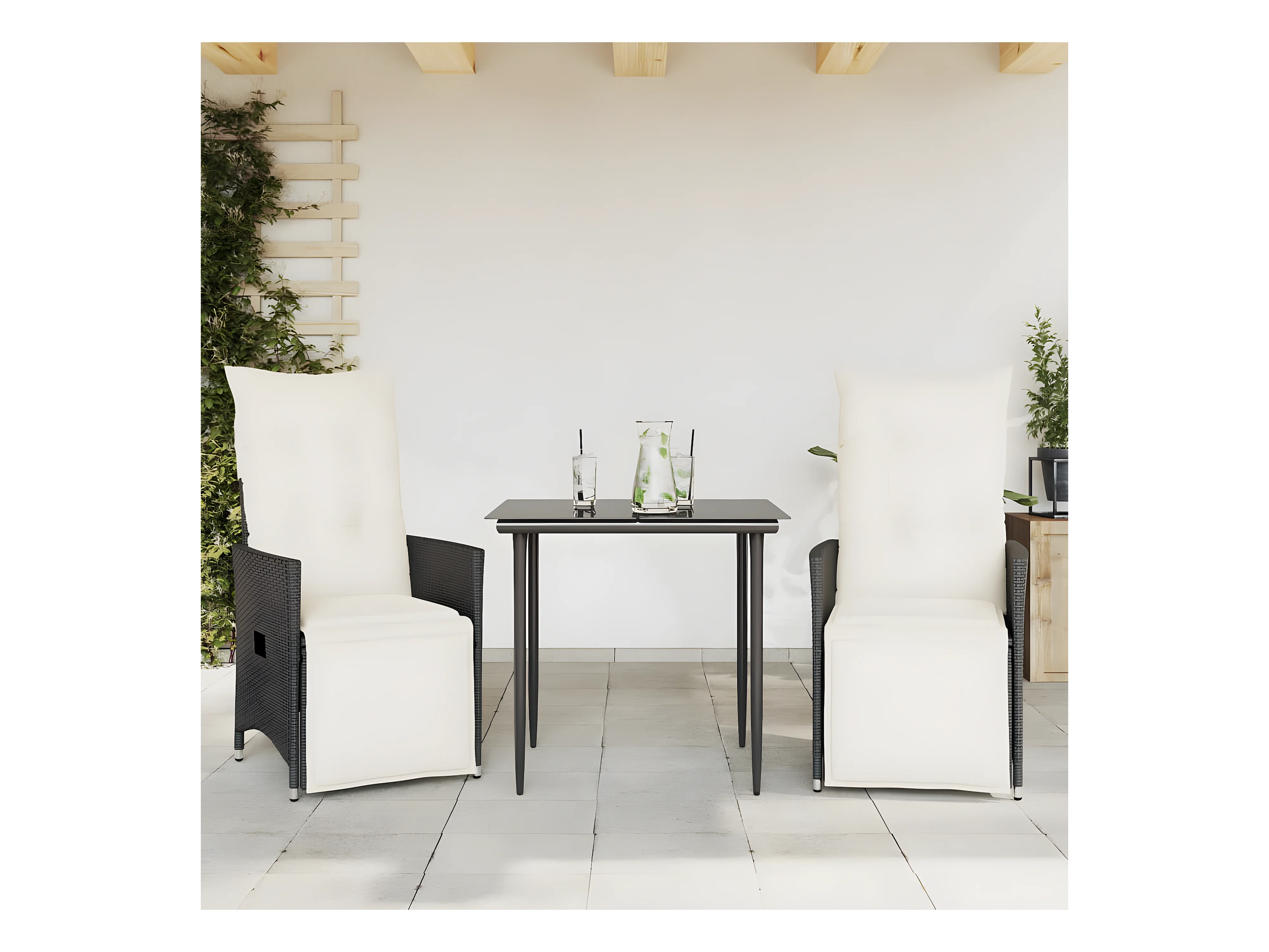 Lot de 2 Chaises inclinables de jardin et coussins noir rotin FR48768