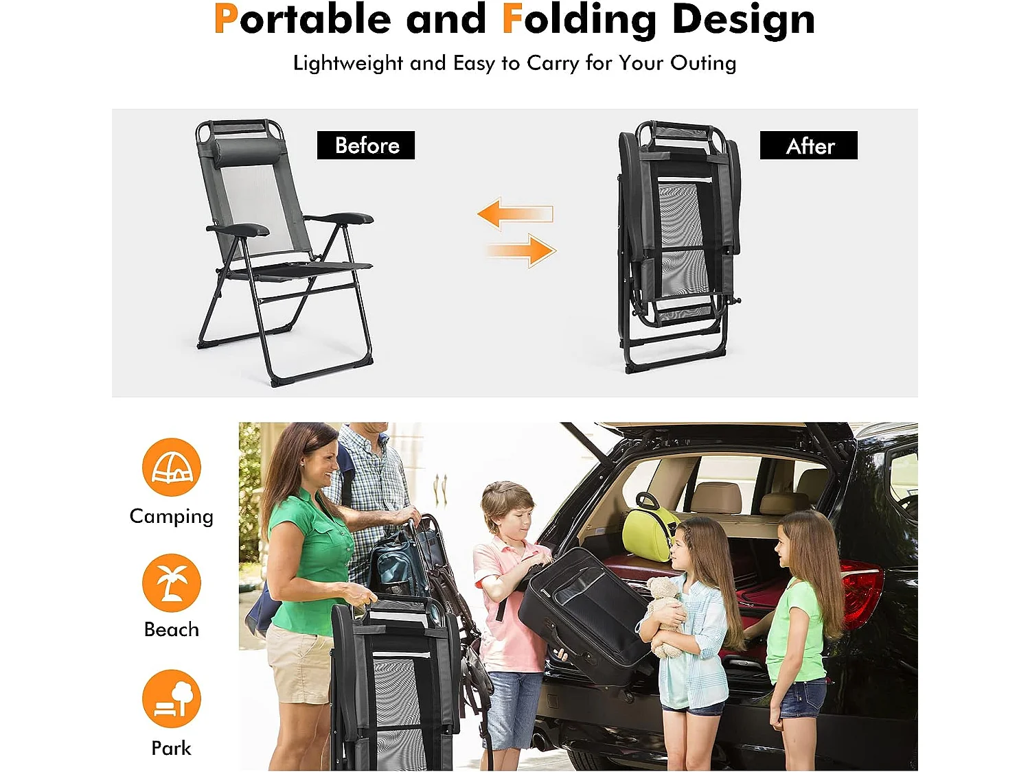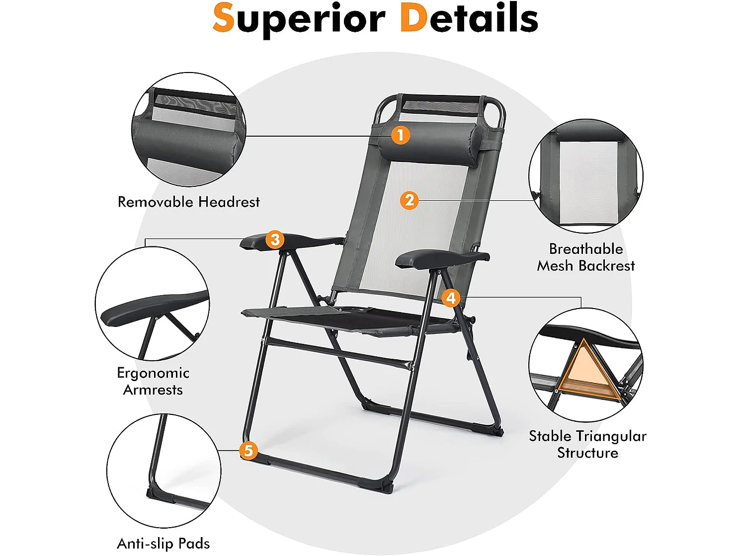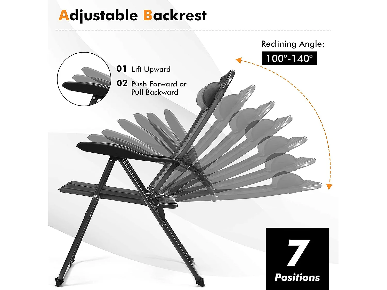 Lot de 2 Chaises Longues Pliante en Tissu Oxford Gris