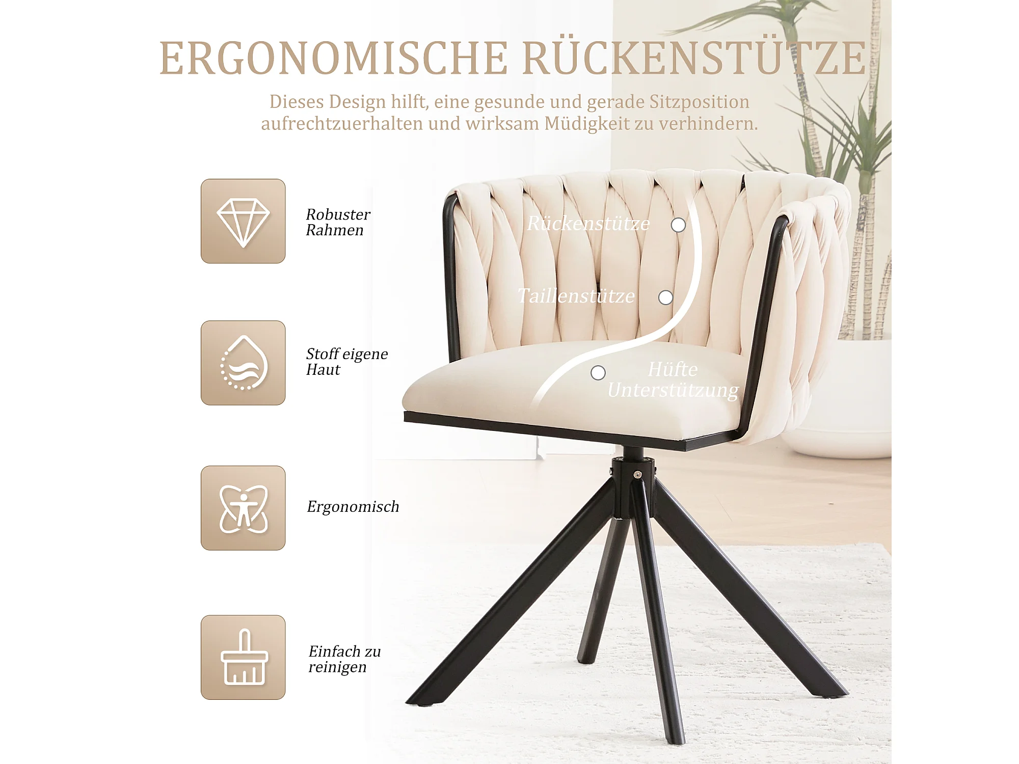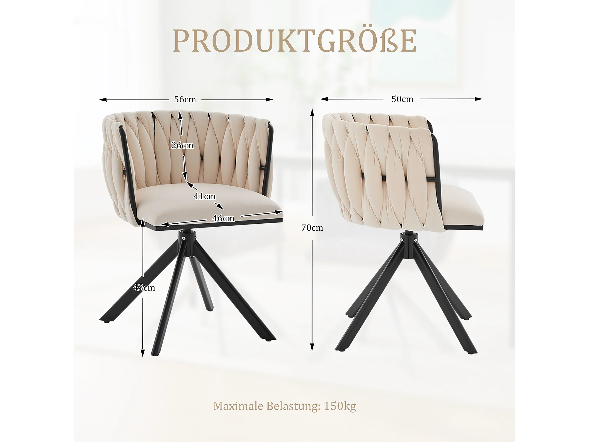 Lot de 2 Chaises de luxe en velours beige - Confort et élégance - Idéale pour salle à manger