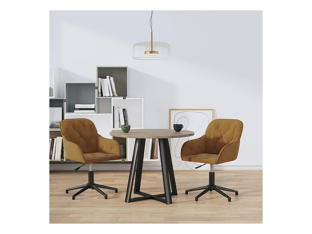 Lot de 2 Chaises pivotantes à manger Marron Velours FR46636
