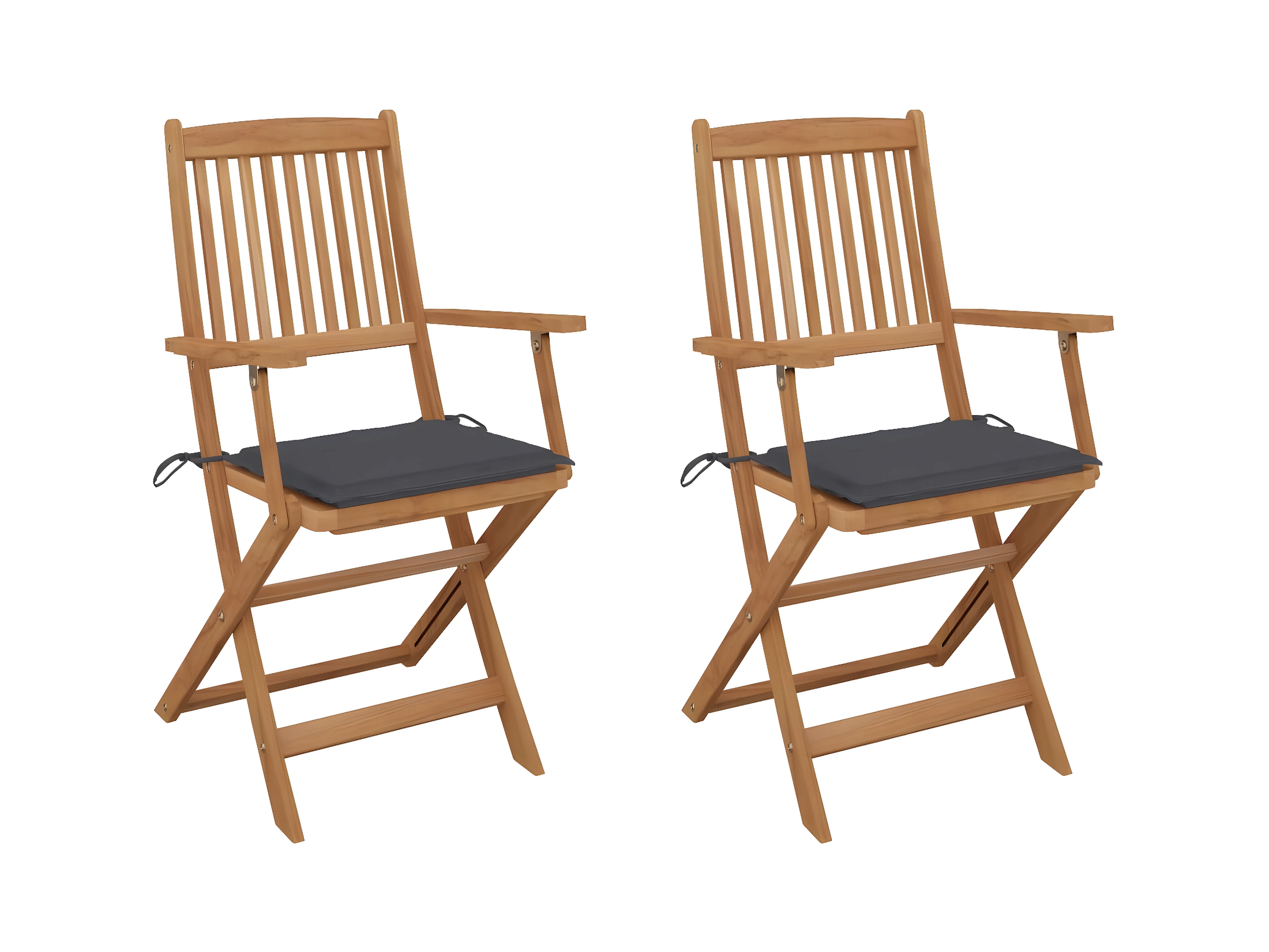 Lot de 2 Chaises pliables de jardin avec coussins Bois d'acacia FR22027