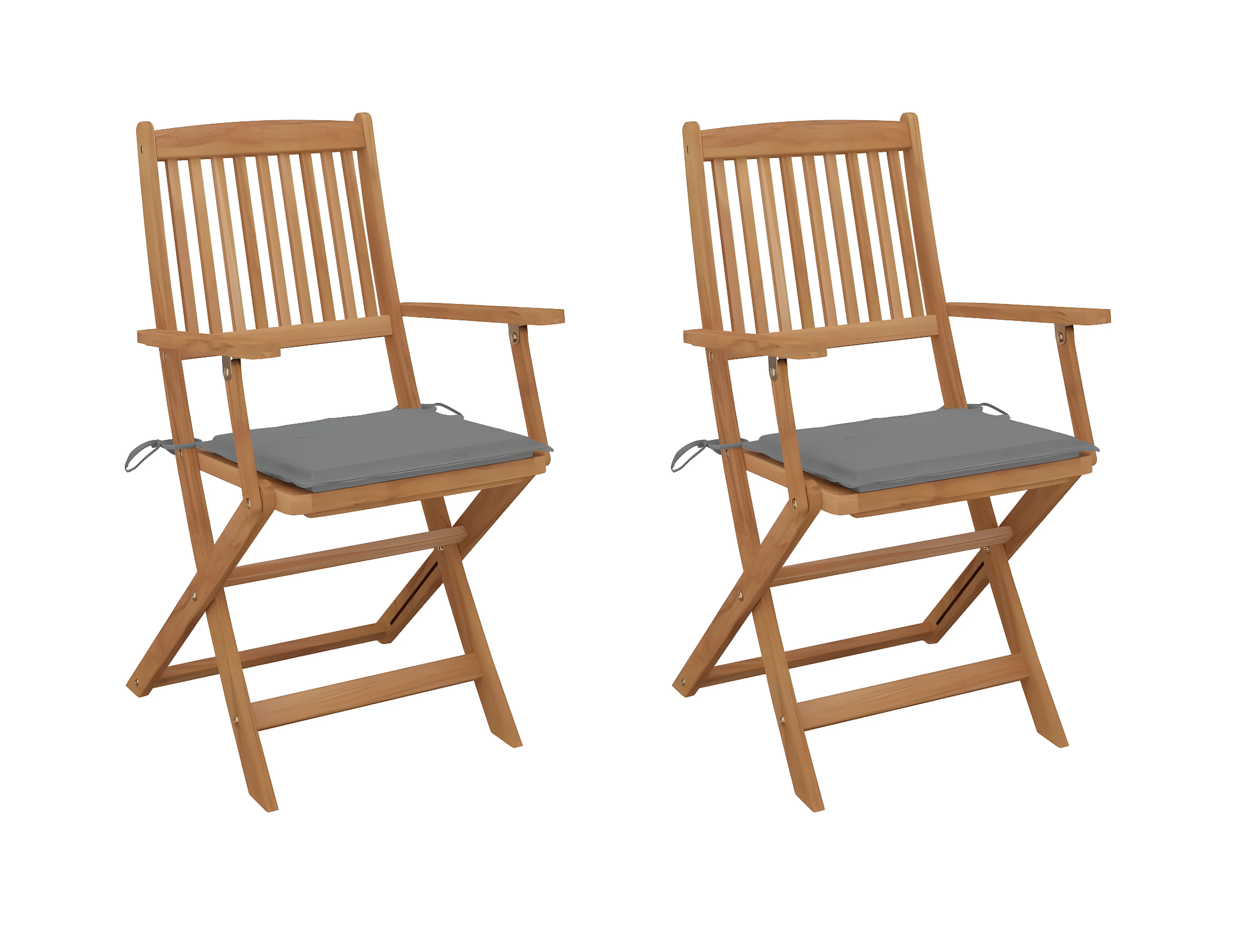Lot de 2 Chaises pliables de jardin avec coussins Bois d'acacia FR99062