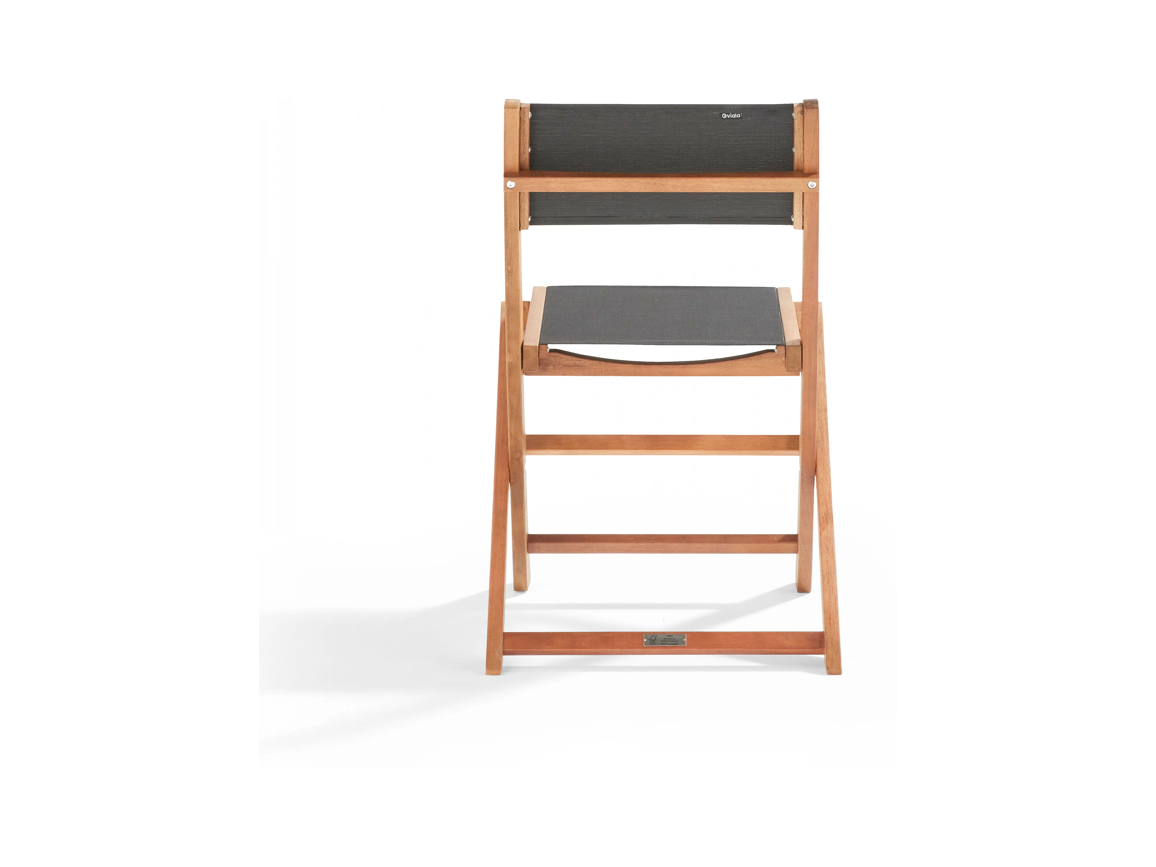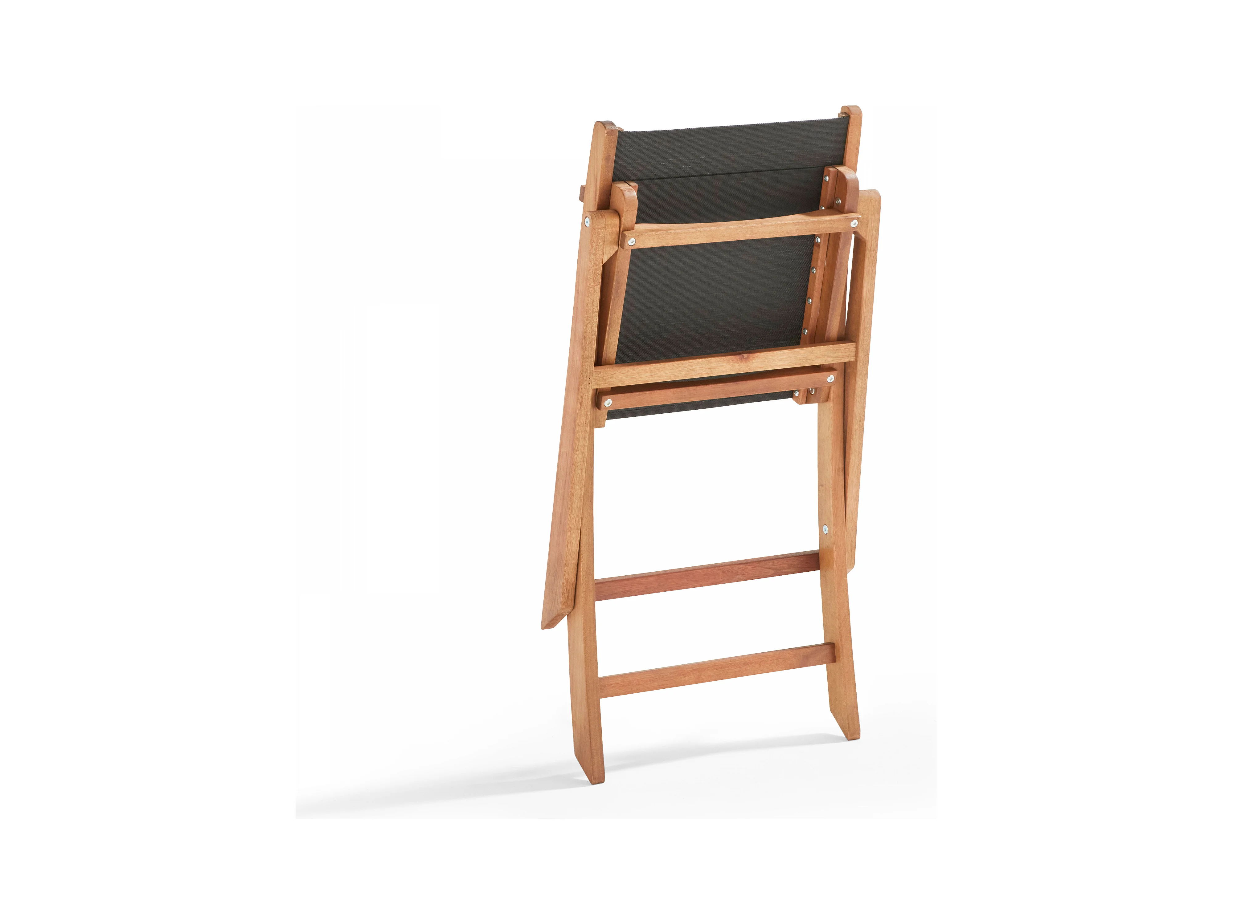 Lot de 2 chaises pliantes en bois d'eucalyptus et textilène noir