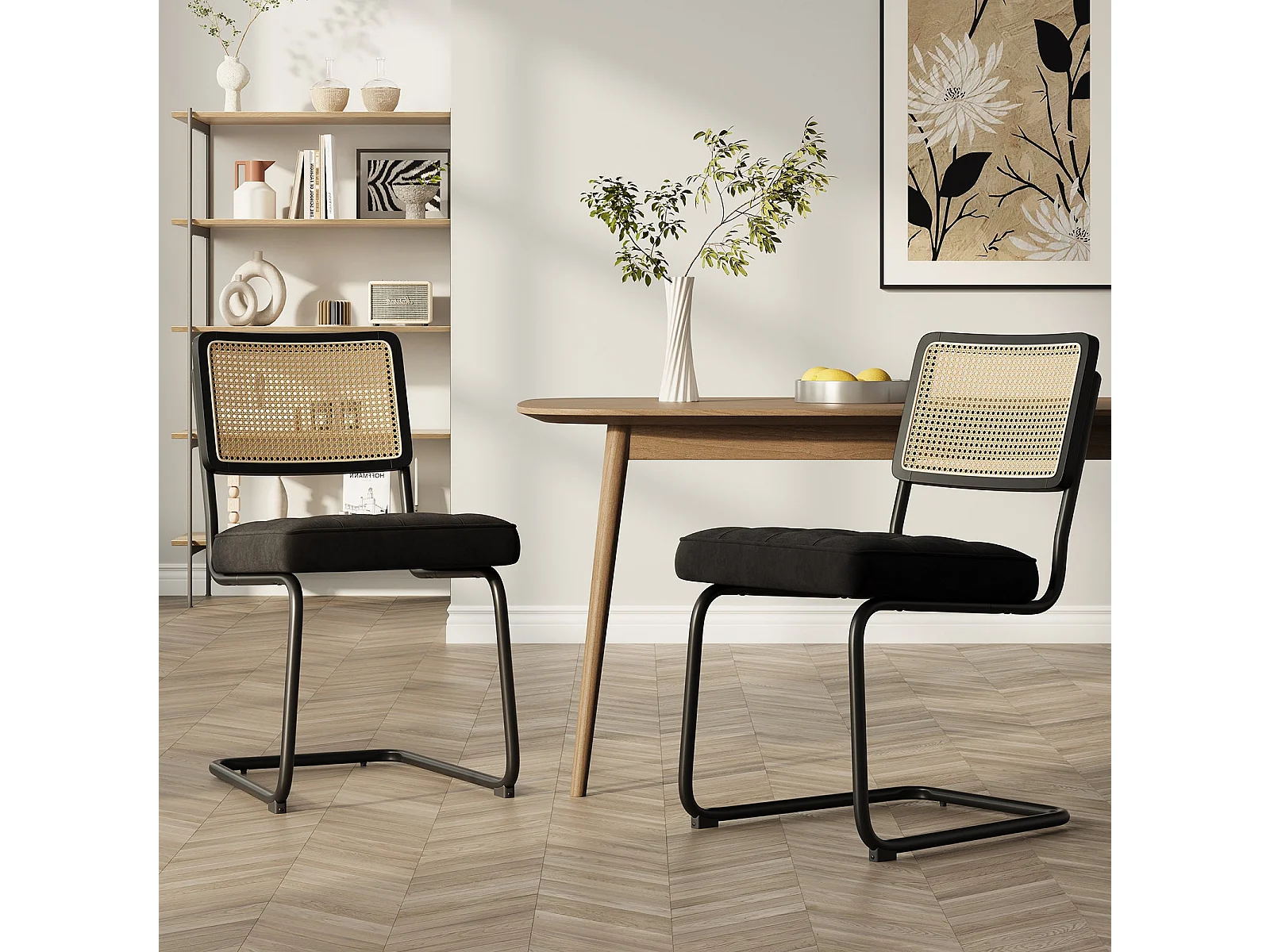 Lot de 2 Chaises de Salle à Manger Cantilever Style Mid-Century – Noir, Velours, Cannage et Structure Chromée