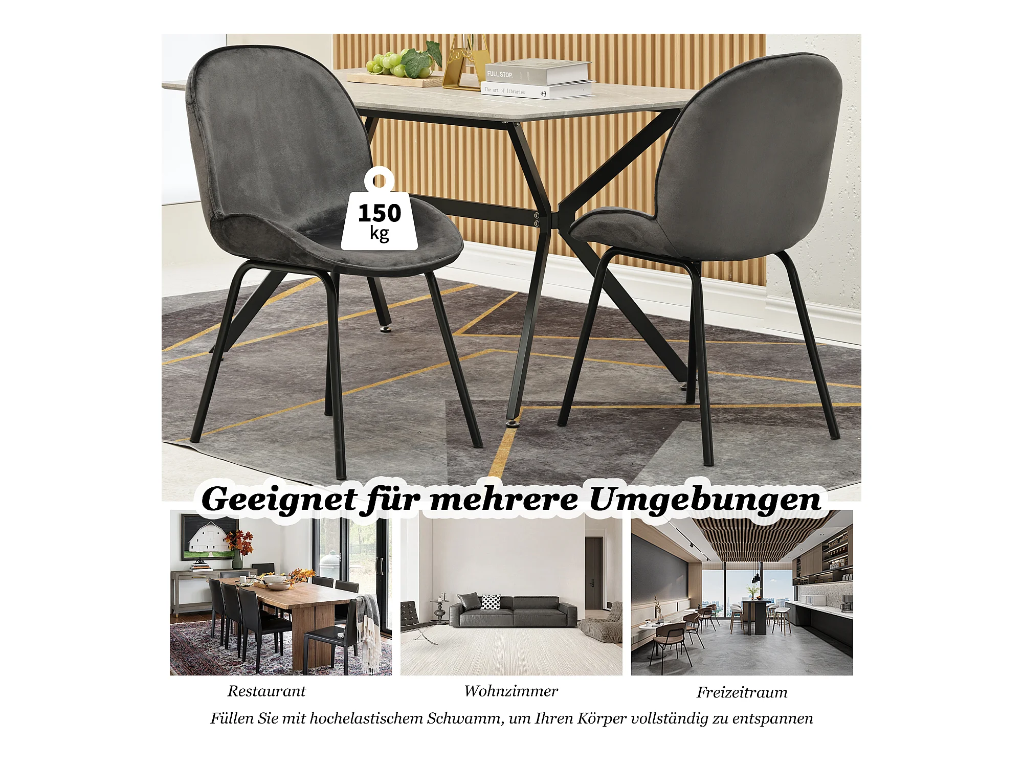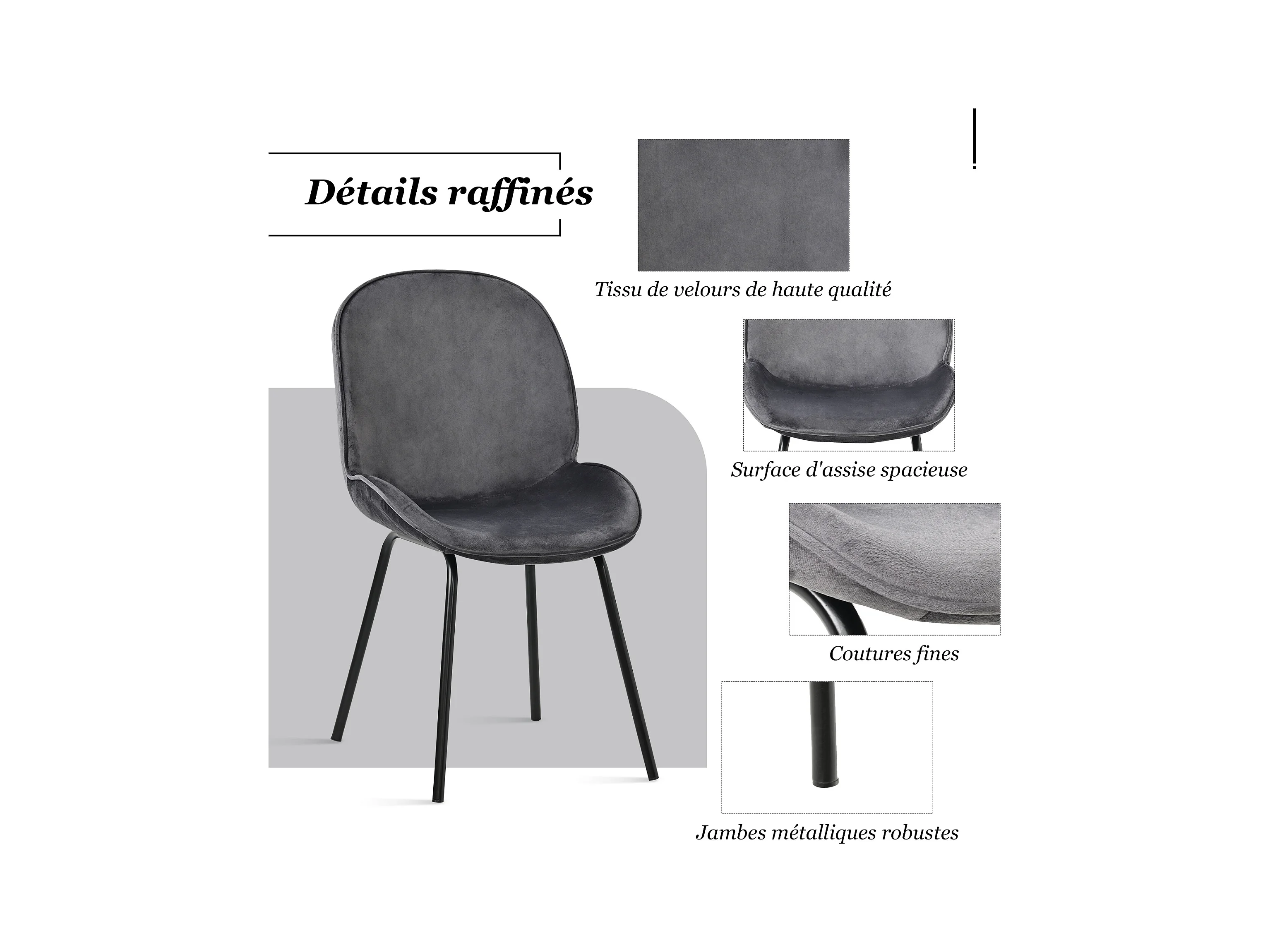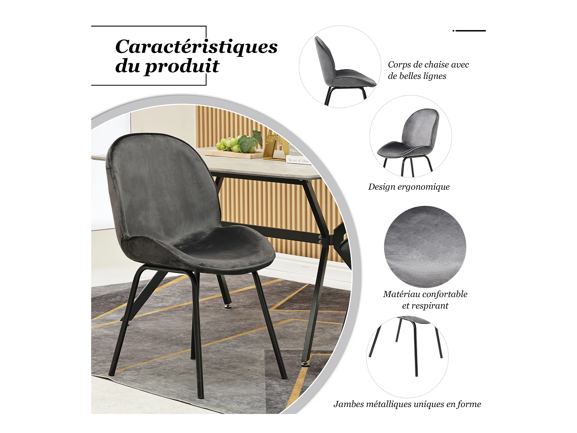 Lot de 2 chaises rembourré en velours - Dossier rond - Pièds en métal - Gris