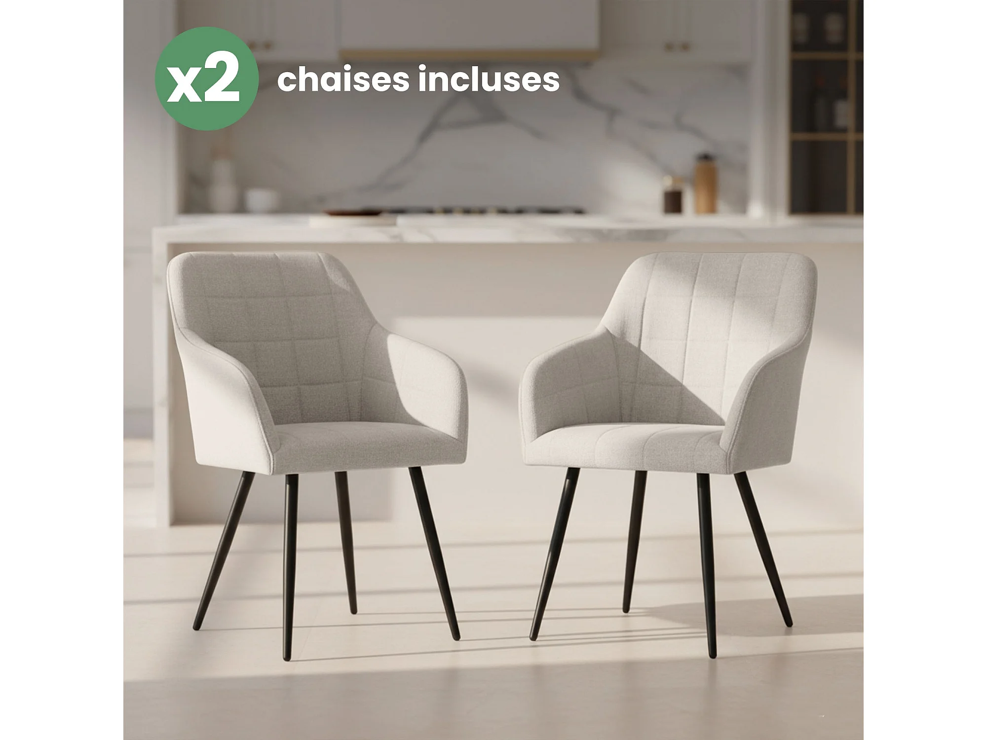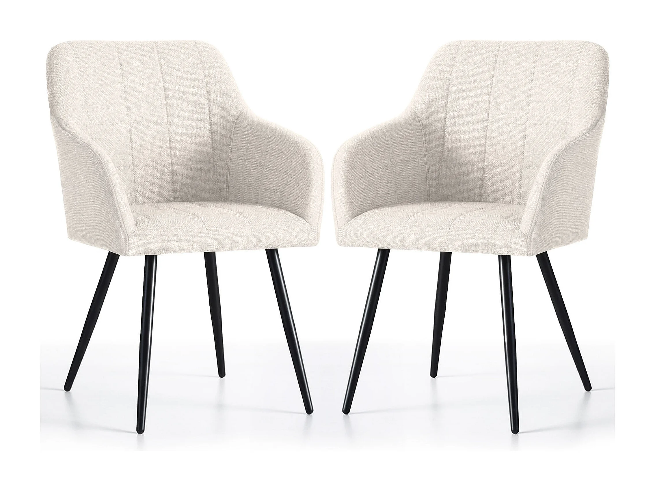 Lot de 2 Chaises rembourrées à surpiqûres carrées LUXANO Crème pieds noirs tissu Lumos