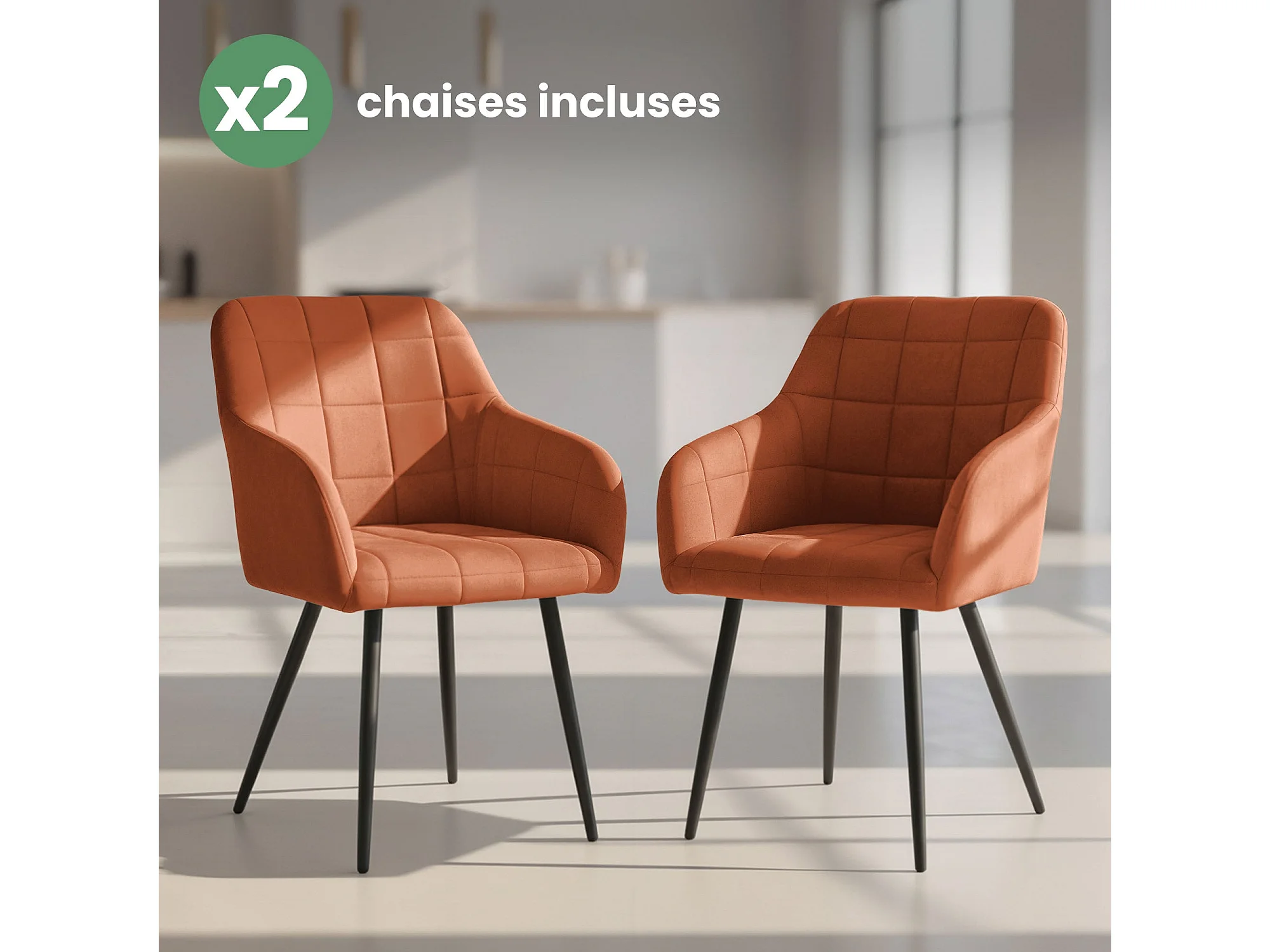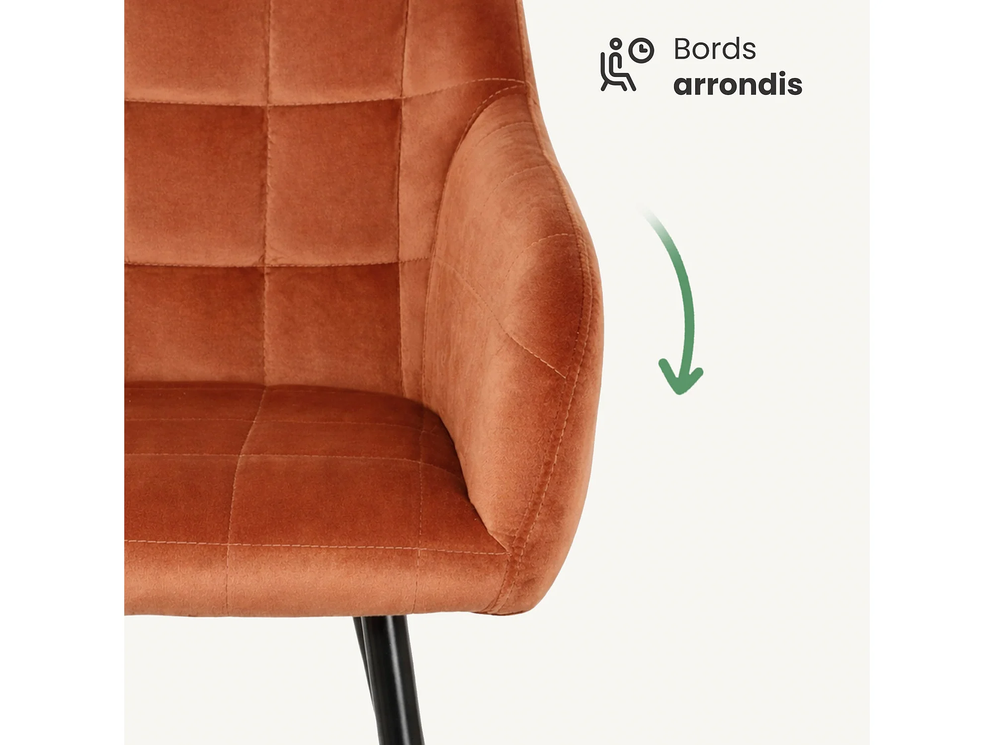 Lot de 2 Chaises rembourrées à surpiqûres carrées LUXANO Cuivre pieds noirs