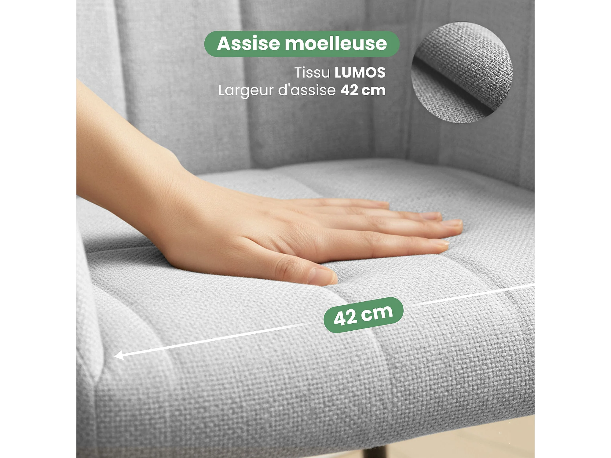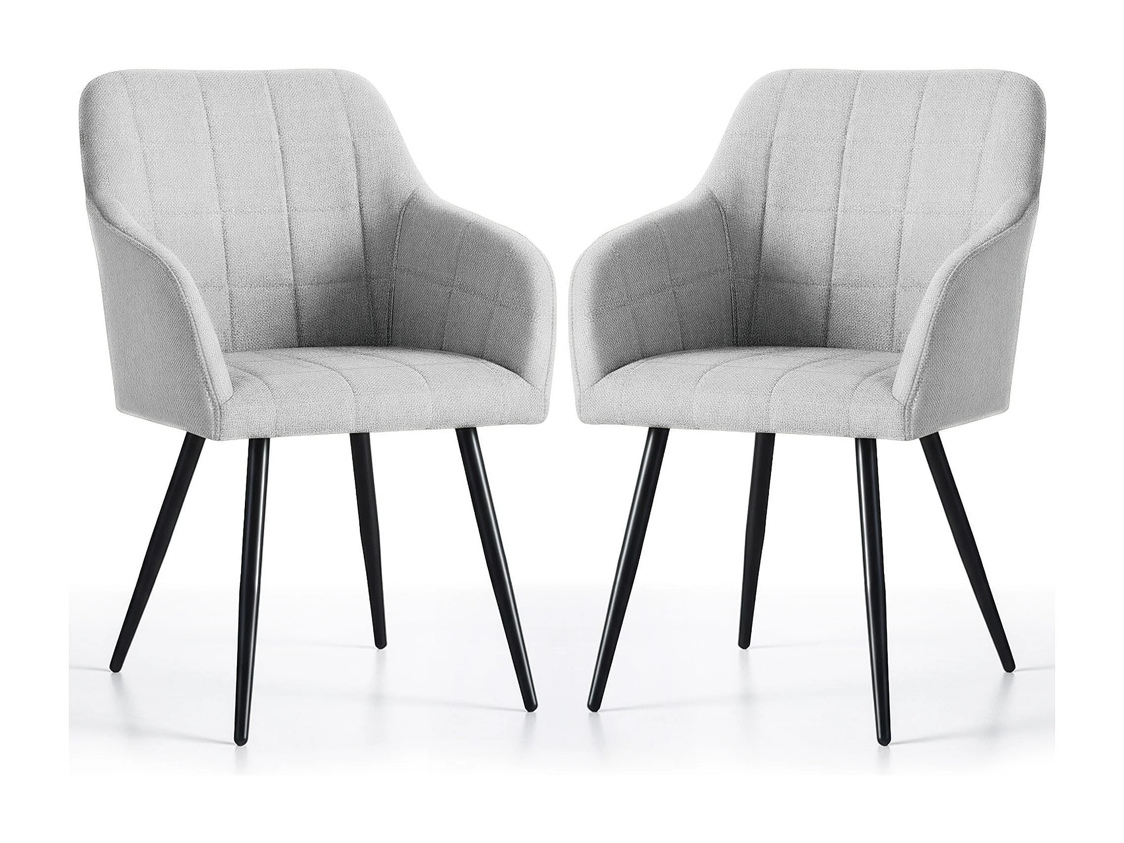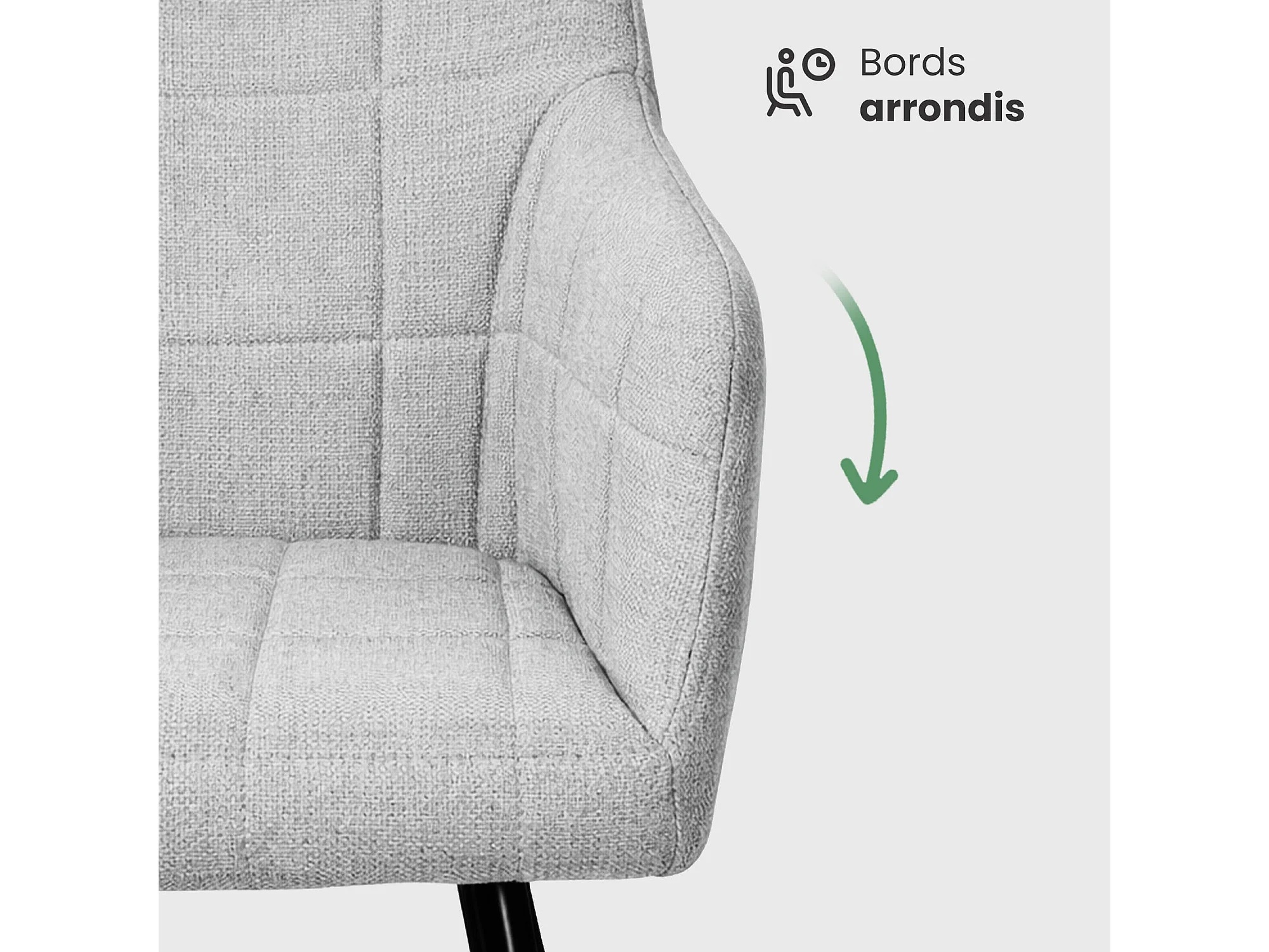 Lot de 2 Chaises rembourrées à surpiqûres carrées LUXANO Gris Clair pieds noirs tissu Lumos