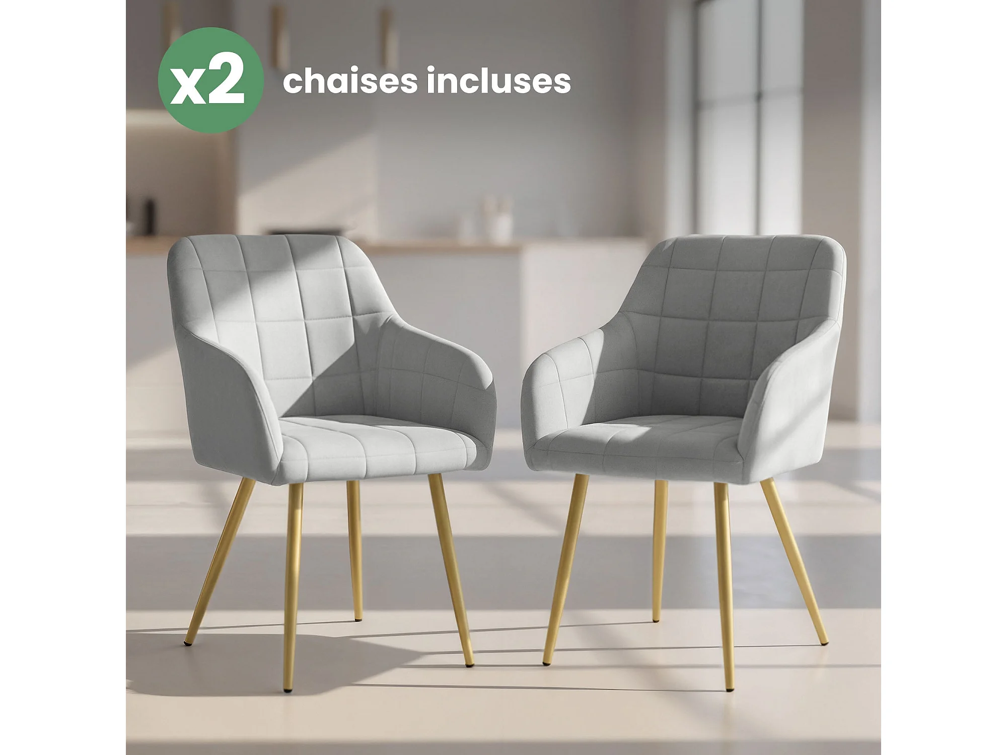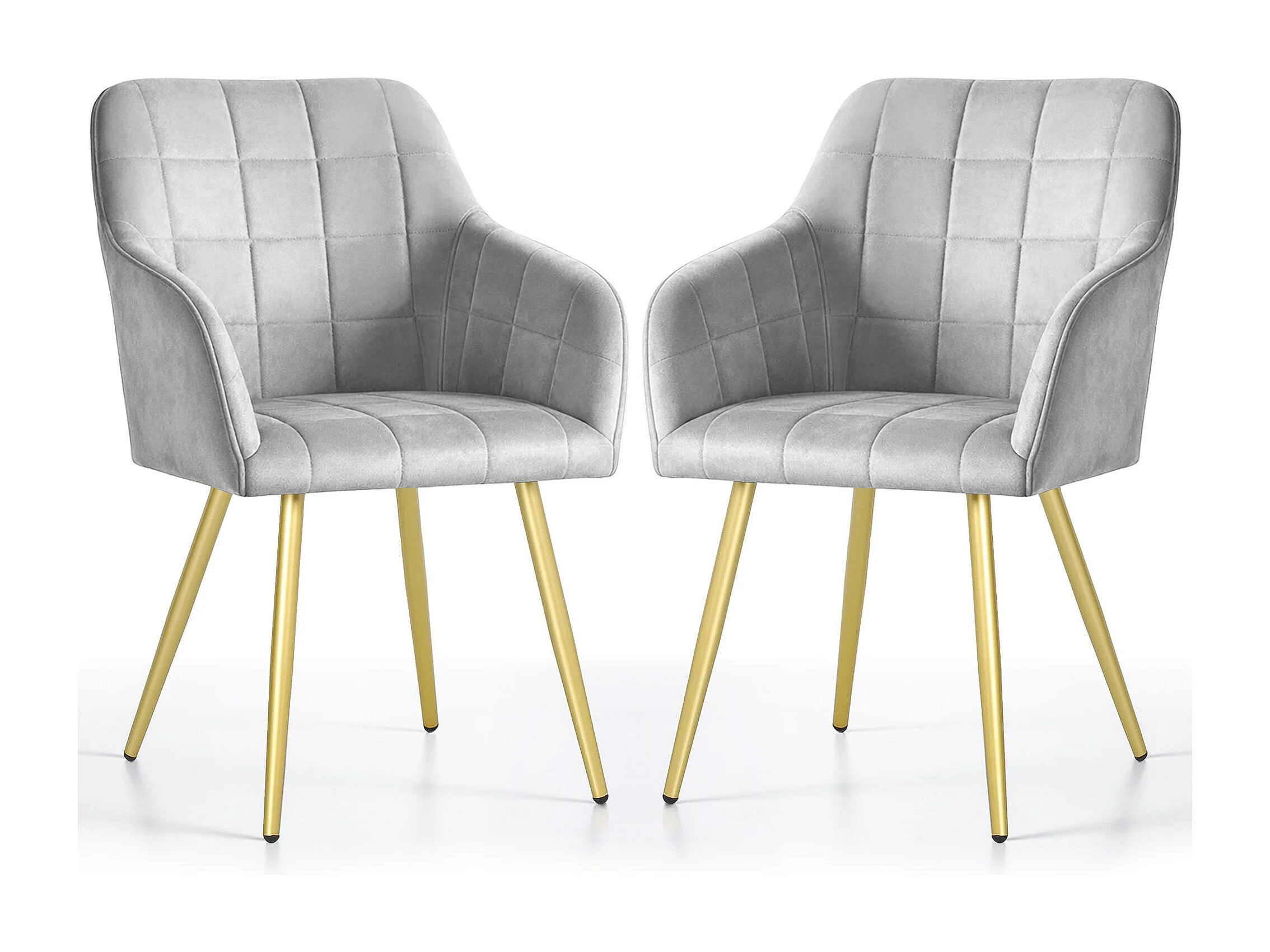 Lot de 2 Chaises rembourrées à surpiqûres carrées LUXANO Gris pieds dorés