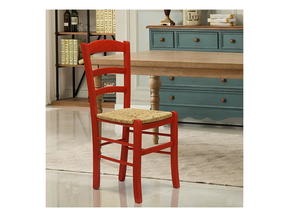 Chaise en bois rouge de Venise avec assise en paille de riz