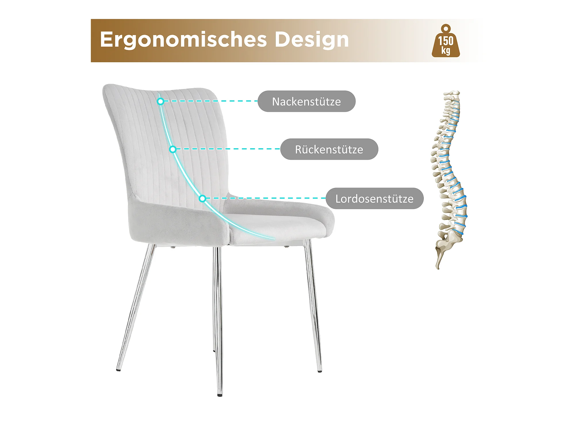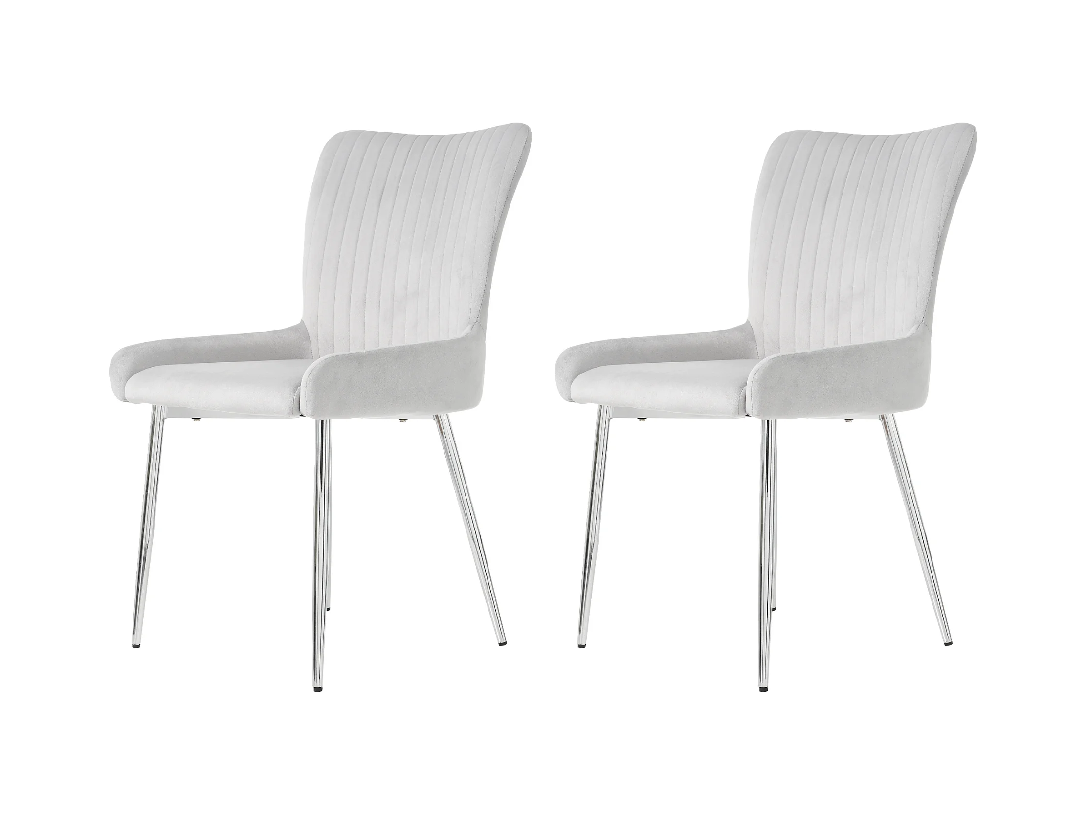 Lot de 2 chaises salle à manger en velours - 85 x 58 x 47 cm - chaise salon de luxe - quatre pieds en métal argenté - gris