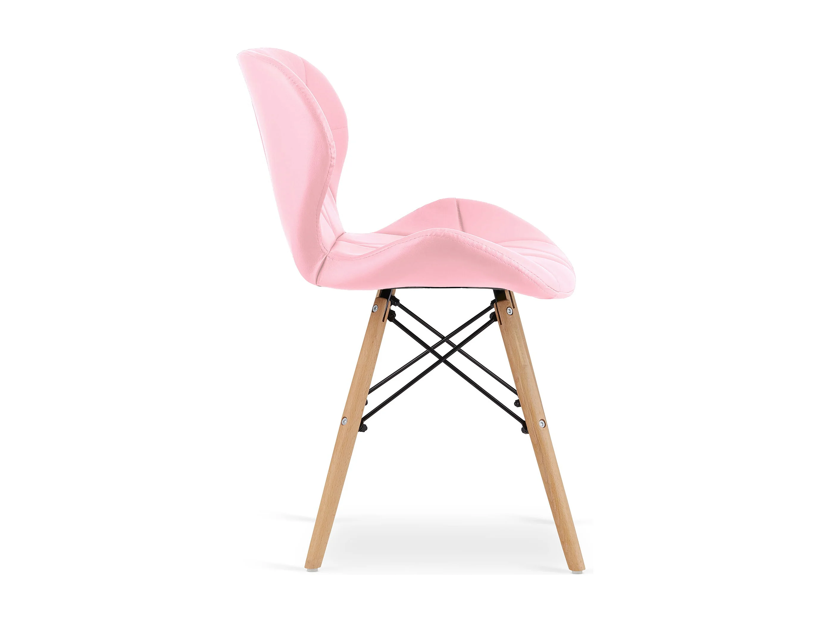 Chaise de salle à manger velours rose pale et bois naturel Akira