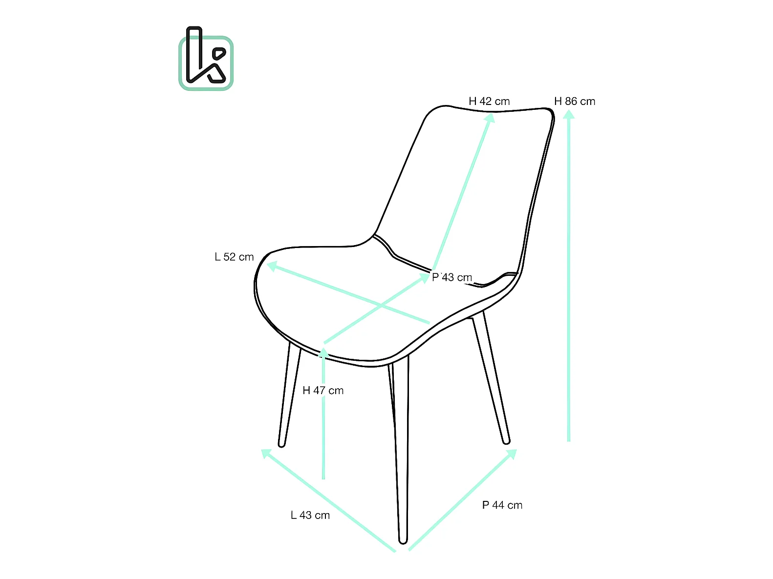chaise salle à manger - Velours & Noir - Bleu - Brook