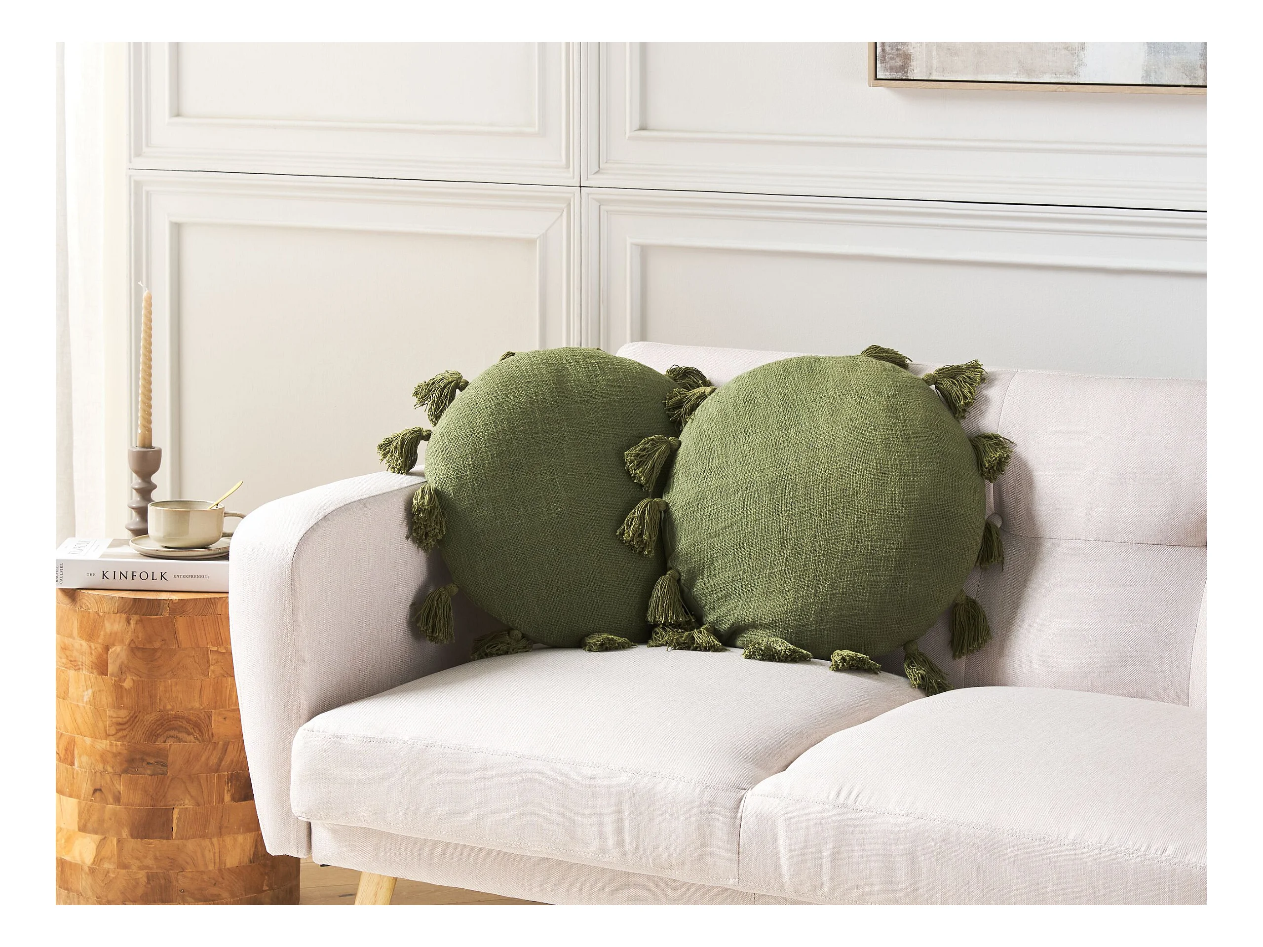 Lot de 2 coussins décoratifs MADIA Coton 45 x 45 cm Vert olive Unicolore