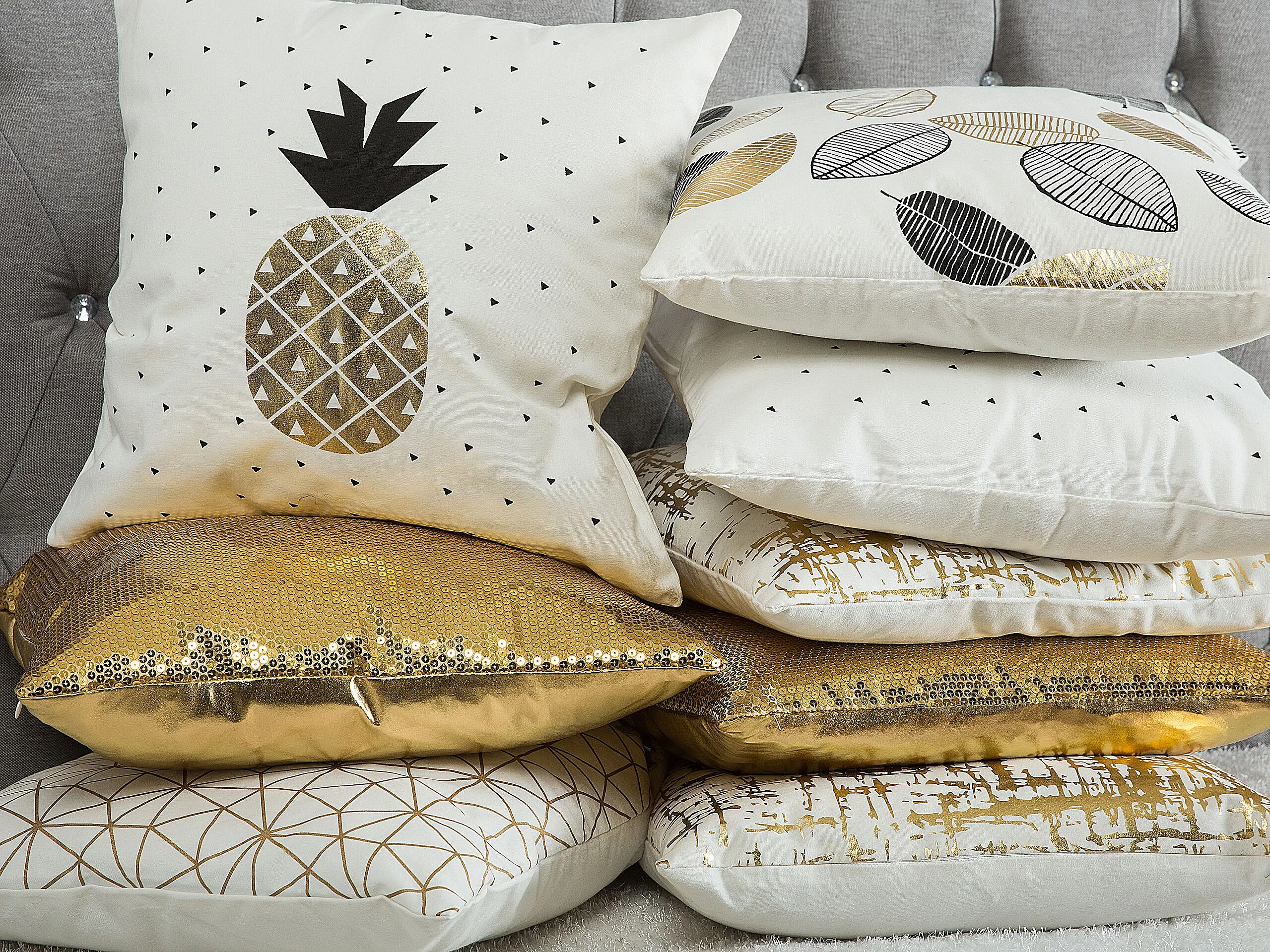 Lot de 2 coussins décoratifs LOTUS Coton 45 x 45 cm Blanc Doré Noir Motif de plante