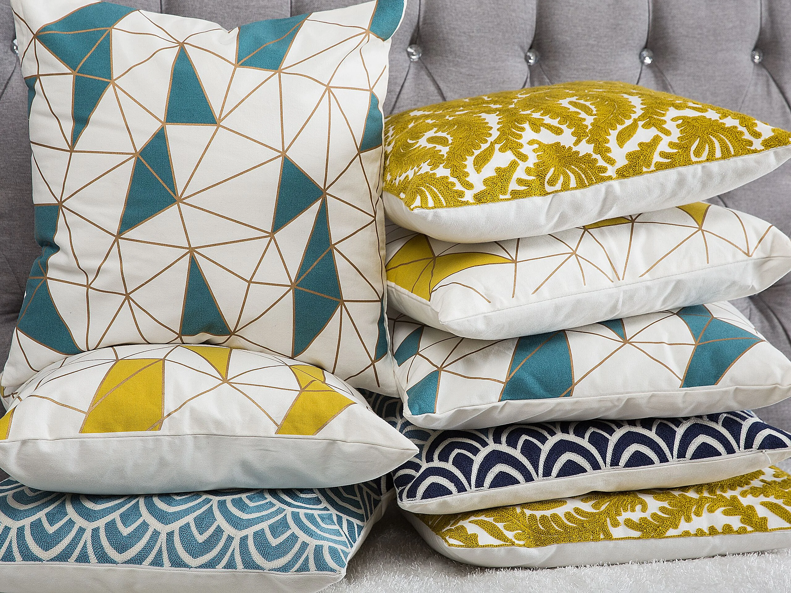 Lot de 2 coussins décoratifs CLARKIA Coton 45 x 45 cm Bleu Motif géométrique