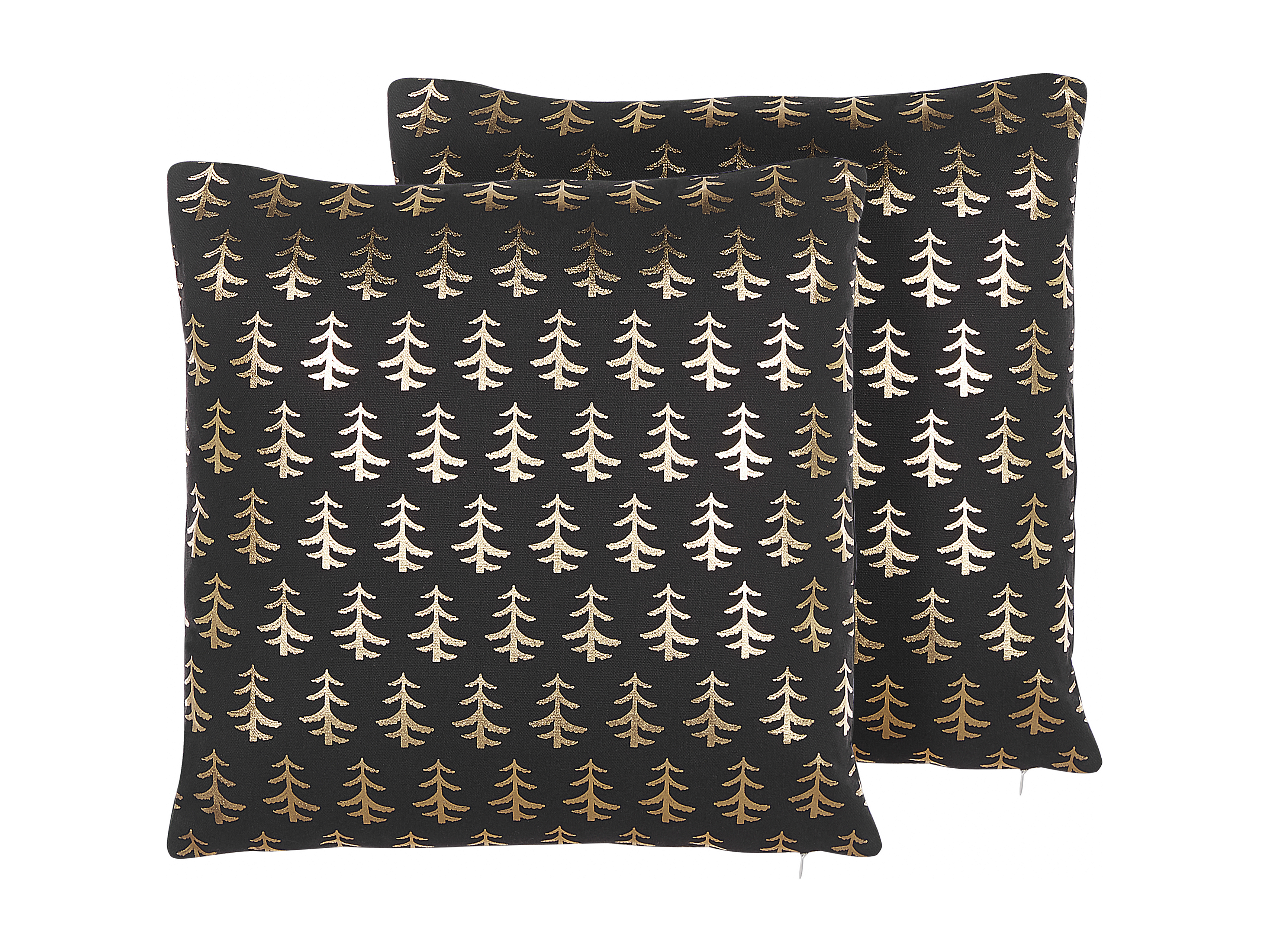 Lot de 2 coussins décoratifs LEROY Coton 45 x 45 cm Noir Motif de Noël