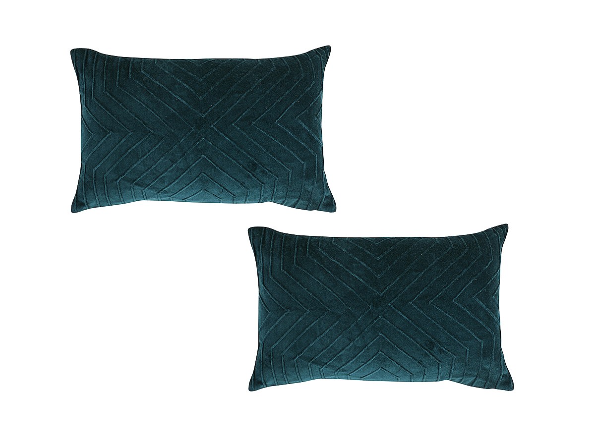 Lot de 2 coussins brodés en velours de coton STOWE - 30 x 50 cm - vert