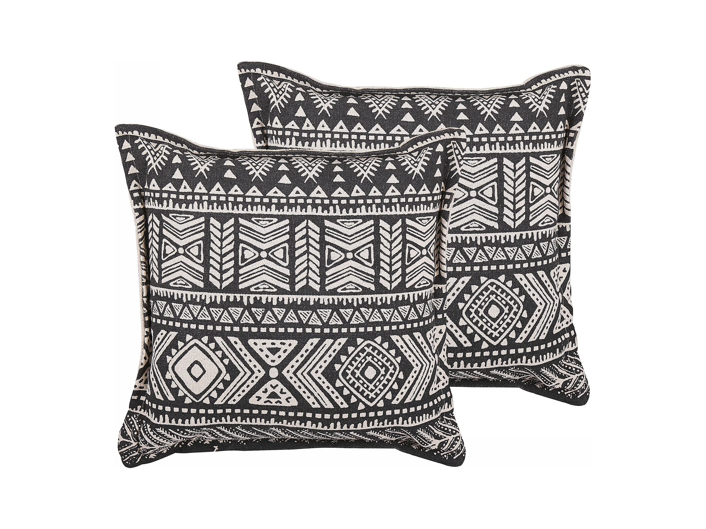 Lot de 2 coussins décoratifs ANDIRIN Coton 45 x 45 cm Noir Motif géométrique