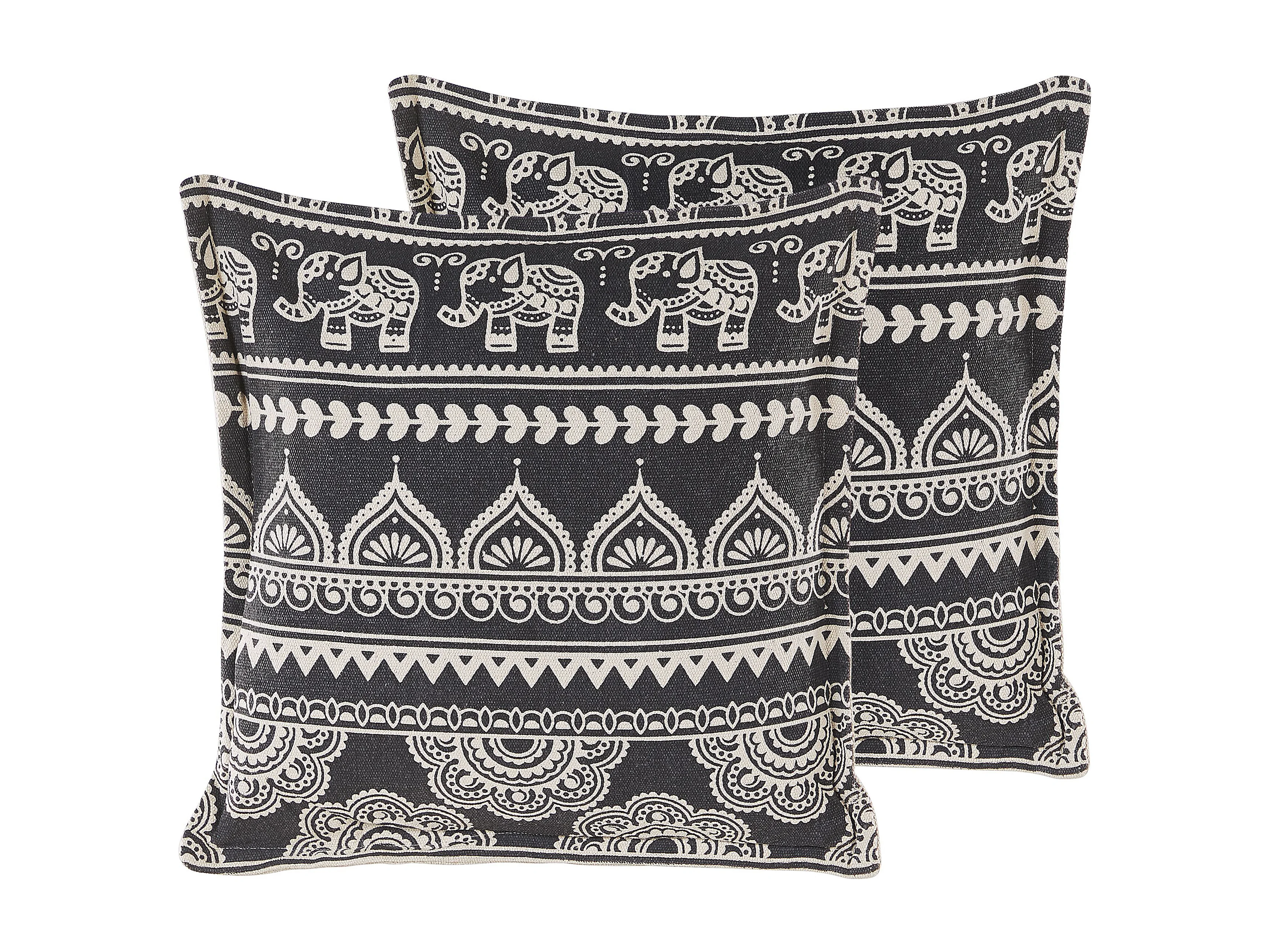Lot de 2 coussins décoratifs ATABAGI Coton 45 x 45 cm Noir Motif oriental