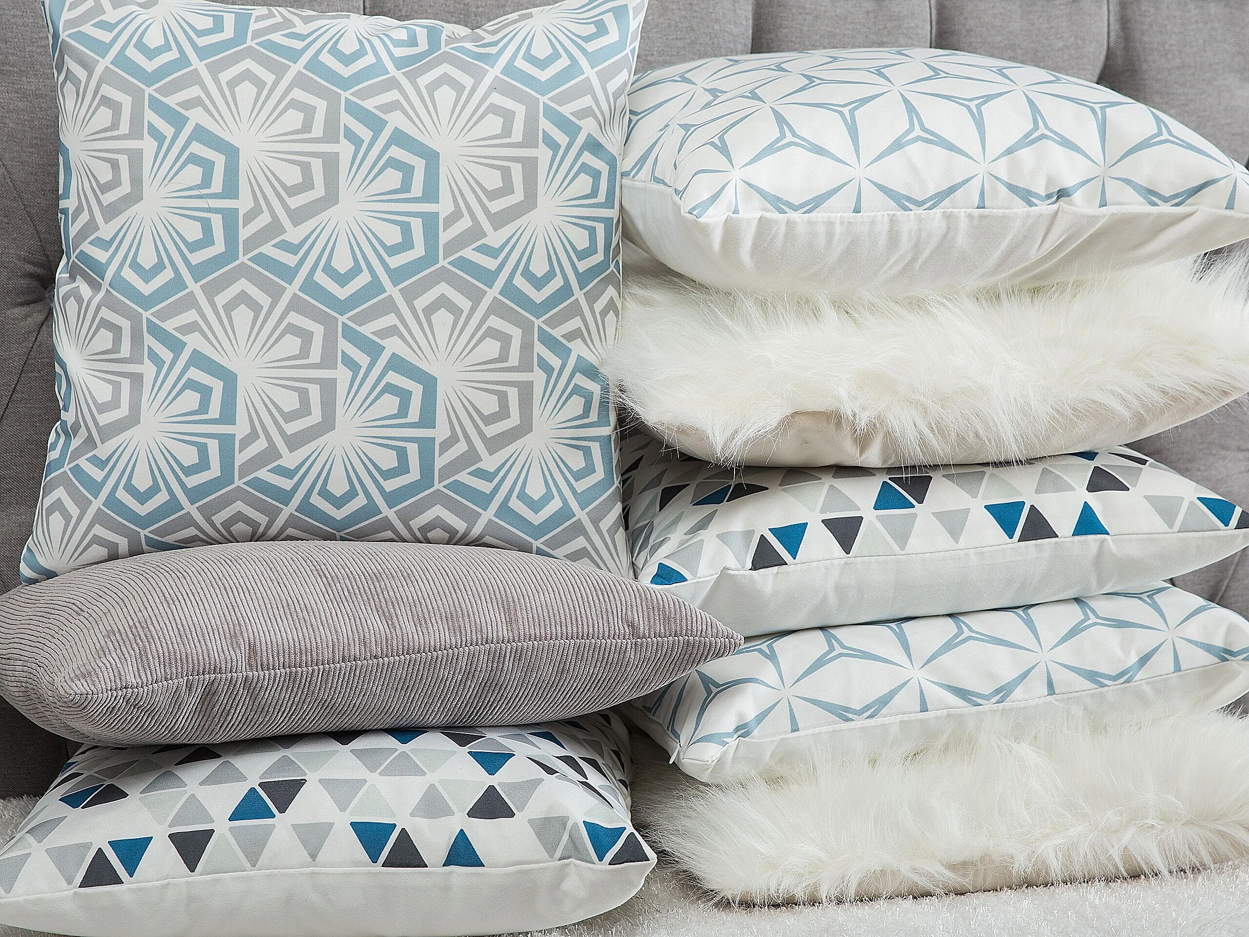 Lot de 2 coussins décoratifs CLEOME 45 x 45 cm Blanc Gris Bleu Motif géométrique