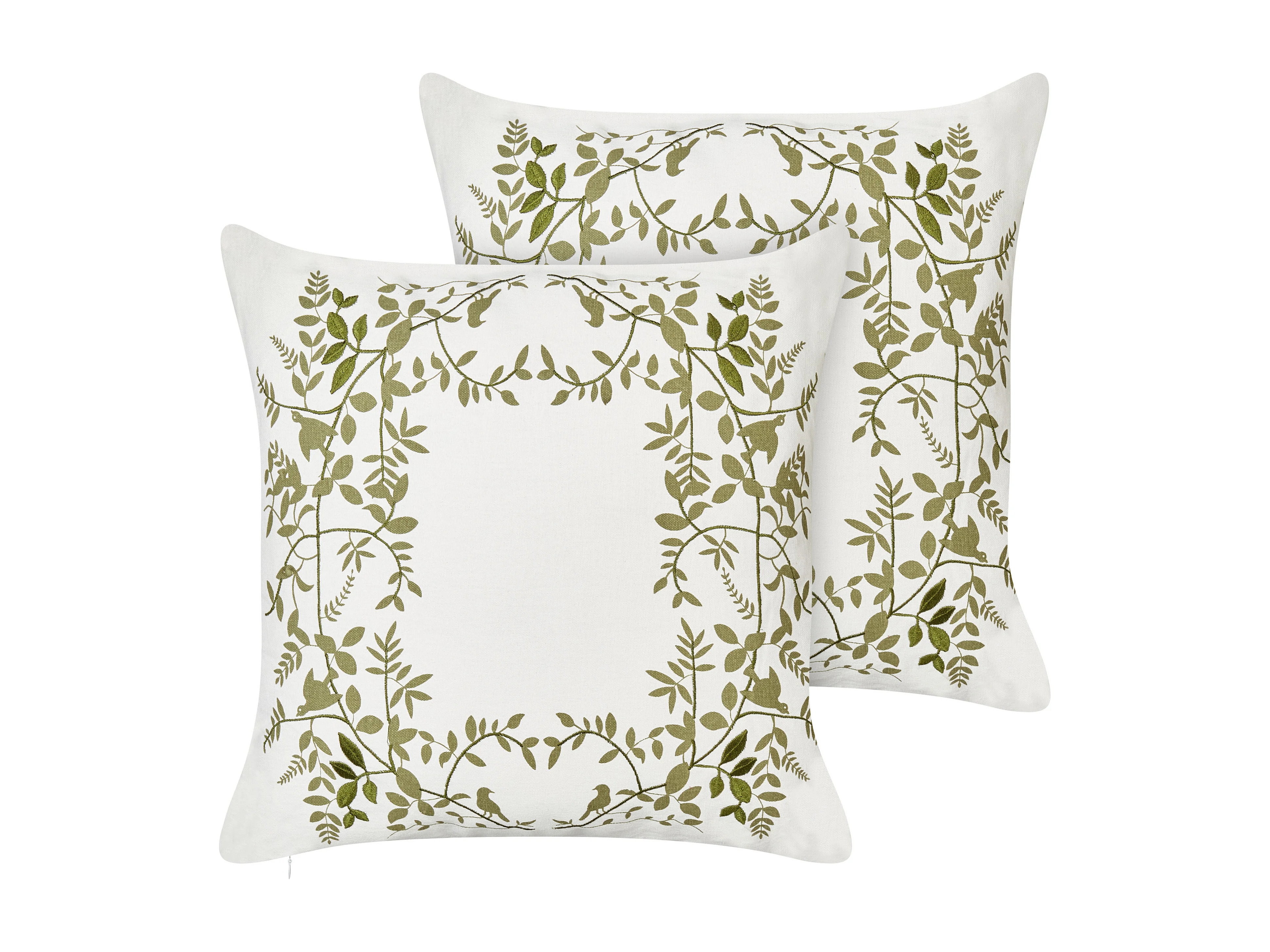 Lot de 2 coussins décoratifs LIVISTONA Coton 45 x 45 cm Blanc Motif floral