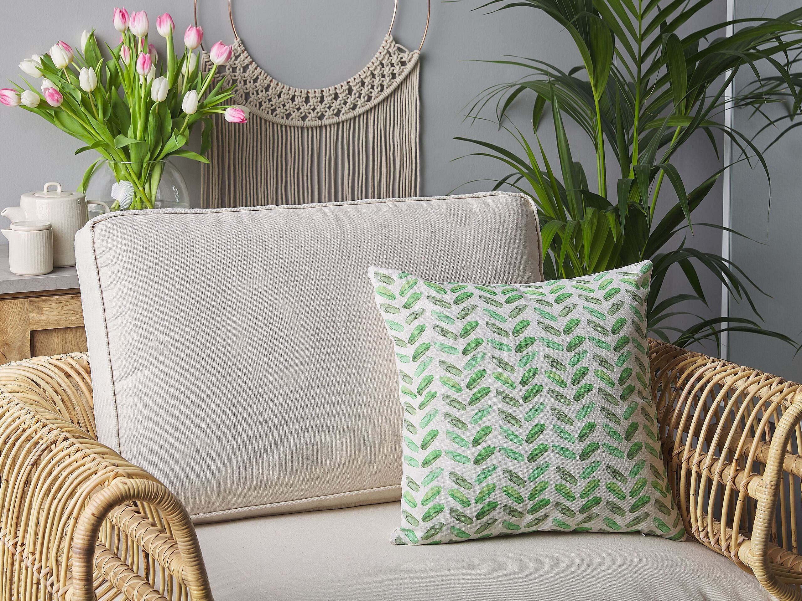 Lot de 2 coussins décoratifs MICROSORUM 45 x 45 cm Vert clair Motif de plante