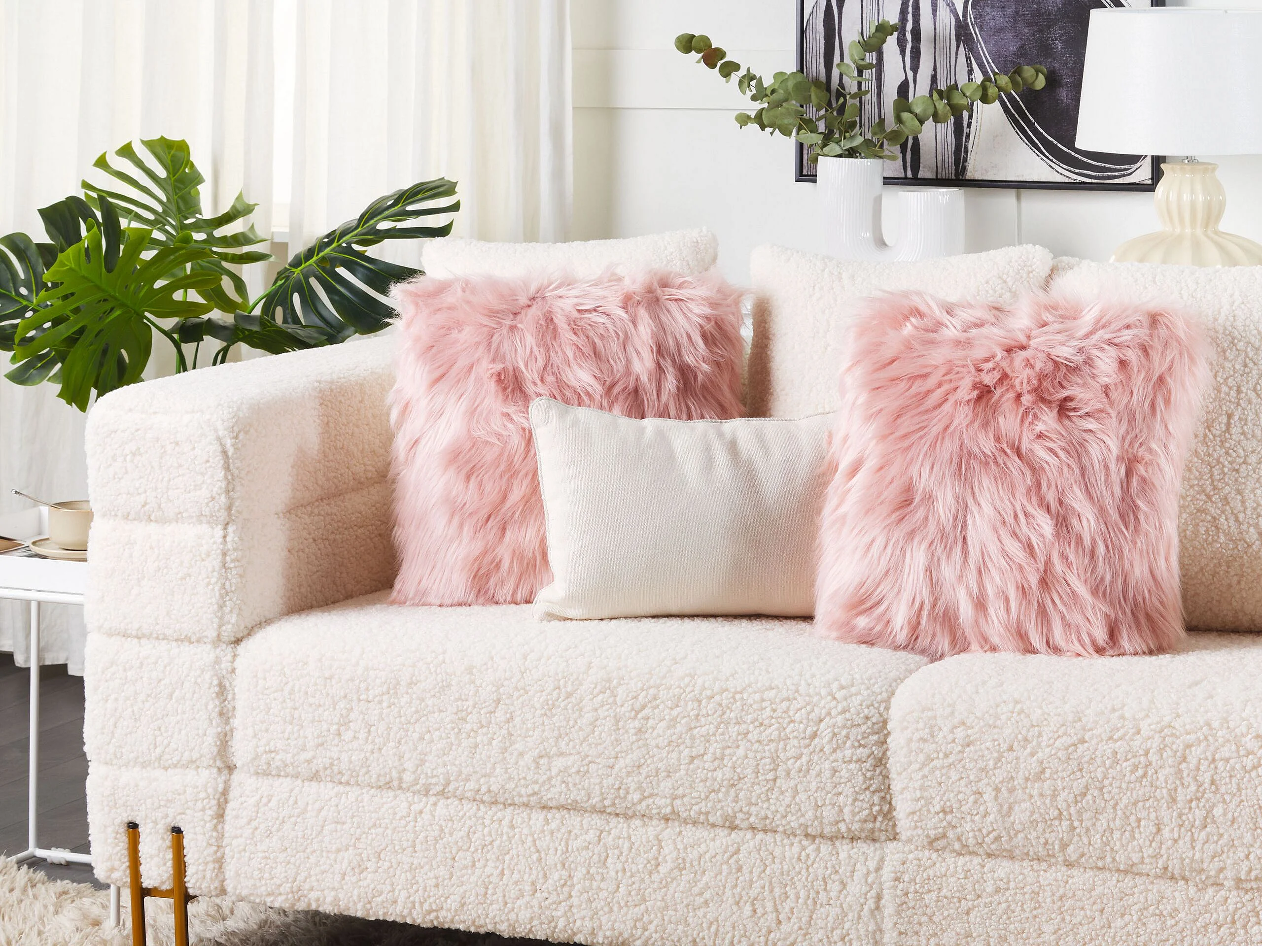 Lot de 2 coussins décoratifs LUBHA Fourrure synthétique 42 x 42 cm Rose Unicolore