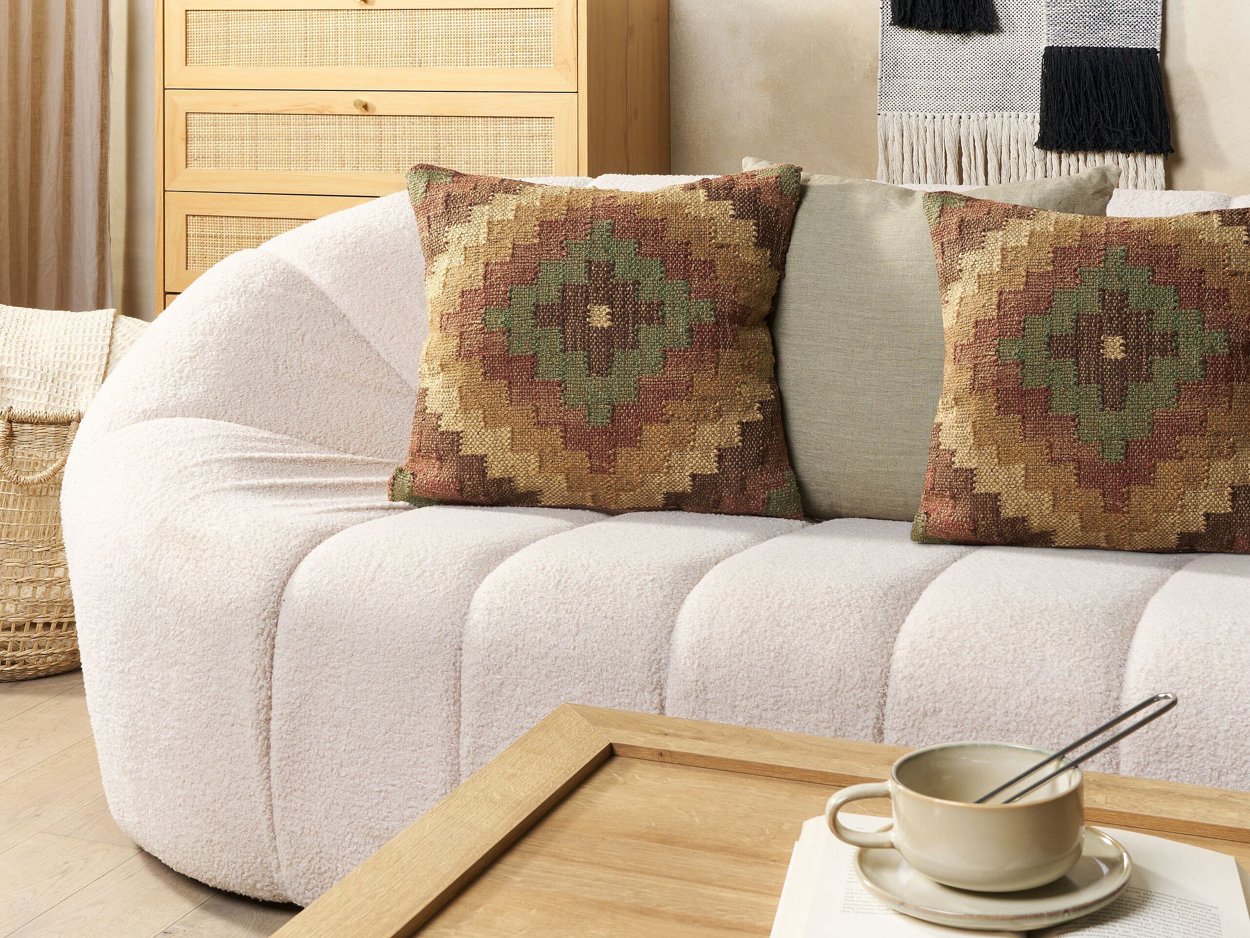 Lot de 2 coussins décoratifs MAGURI Jute 45 x 45 cm Marron Motif oriental