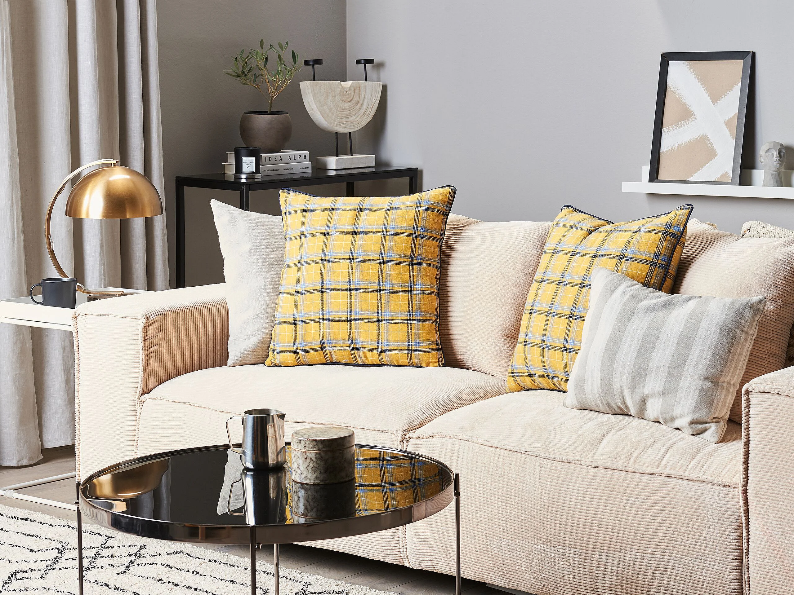 Lot de 2 coussins décoratifs DICENTRA 45 x 45 cm Jaune À carreaux