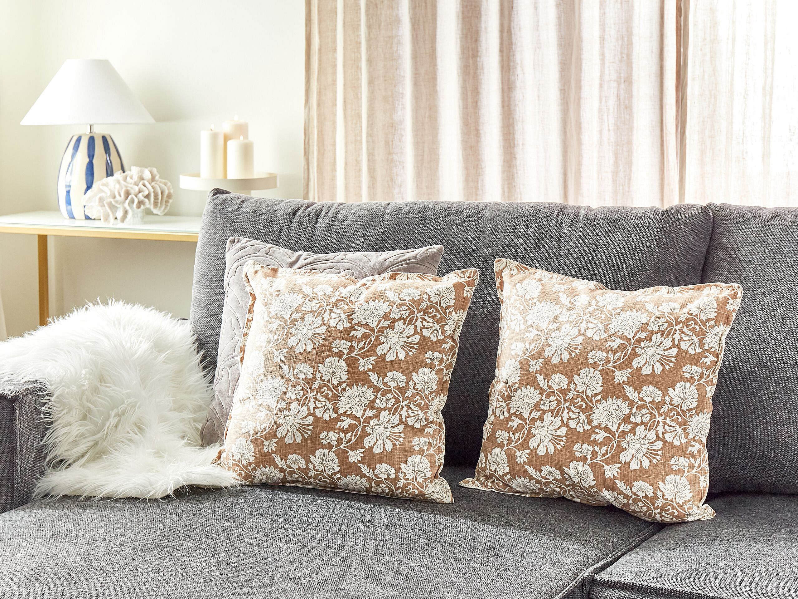 Lot de 2 coussins décoratifs PSILOTALES Coton 45 x 45 cm Beige Motif floral
