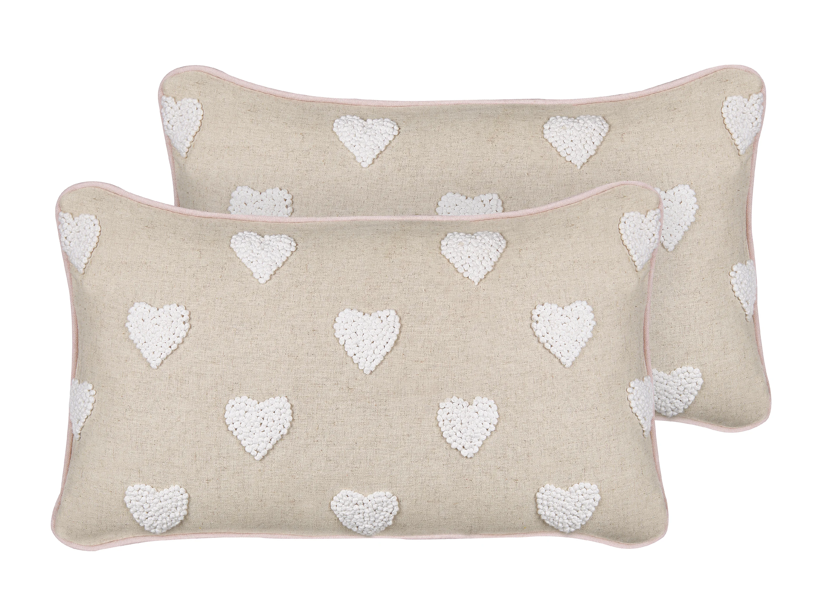 Lot de 2 coussins en coton brodé à motif de cœurs beige 30 x 50 cm GAZANIA