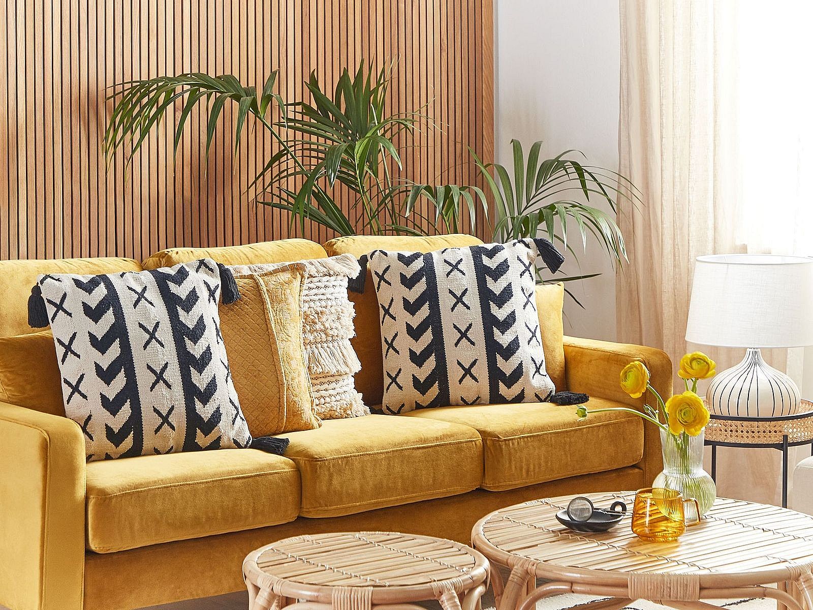 Lot de 2 coussins décoratifs SAMBUCUS Coton 45 x 45 cm Beige Motif géométrique