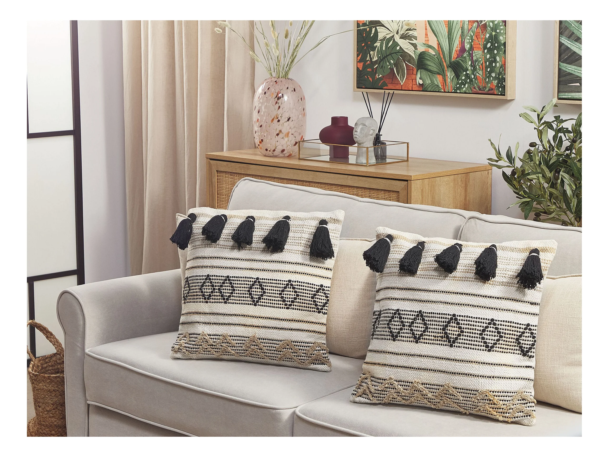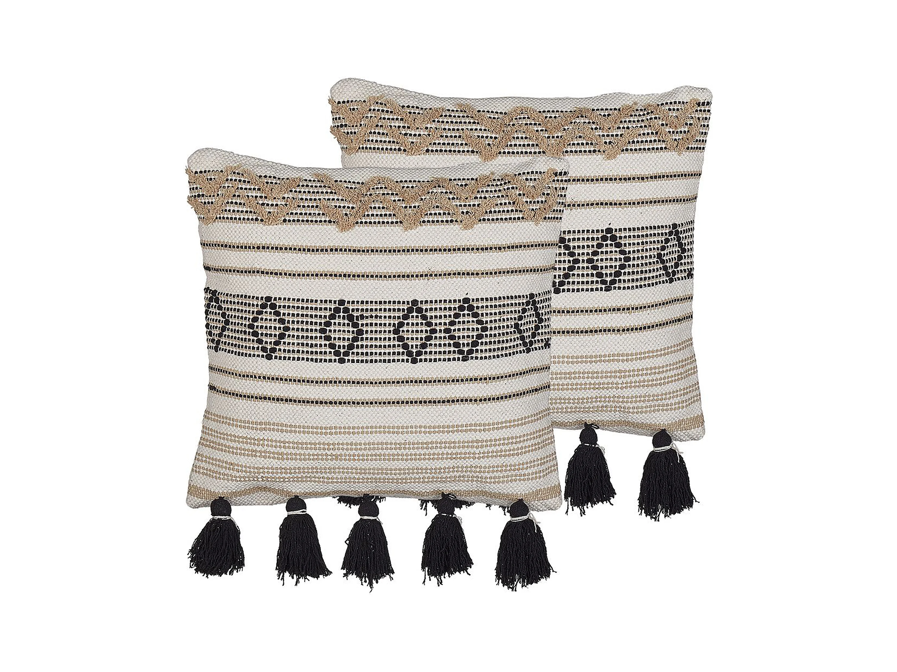 Lot de 2 coussins décoratifs CEIBA Coton 45 x 45 cm Beige Motif géométrique