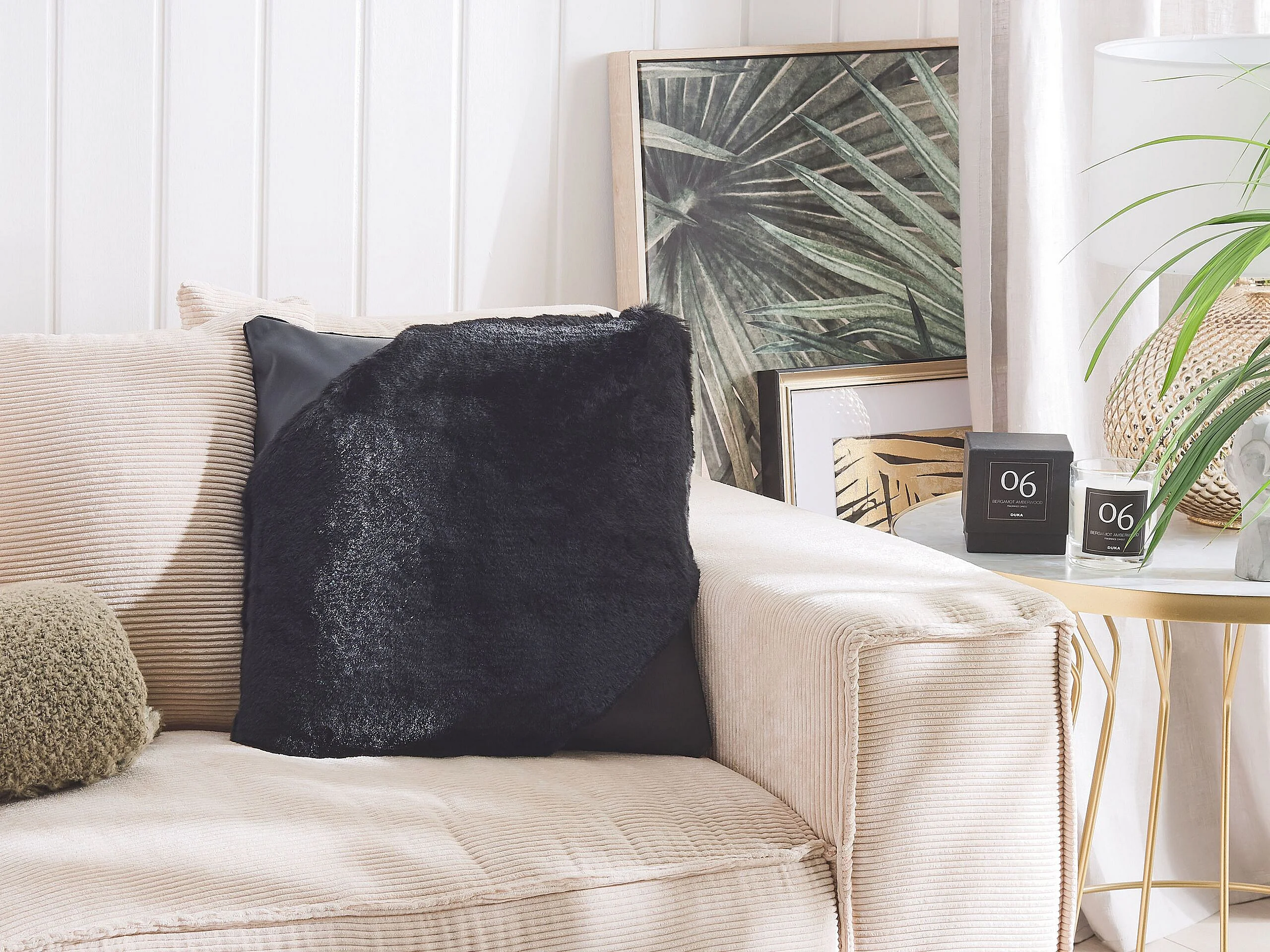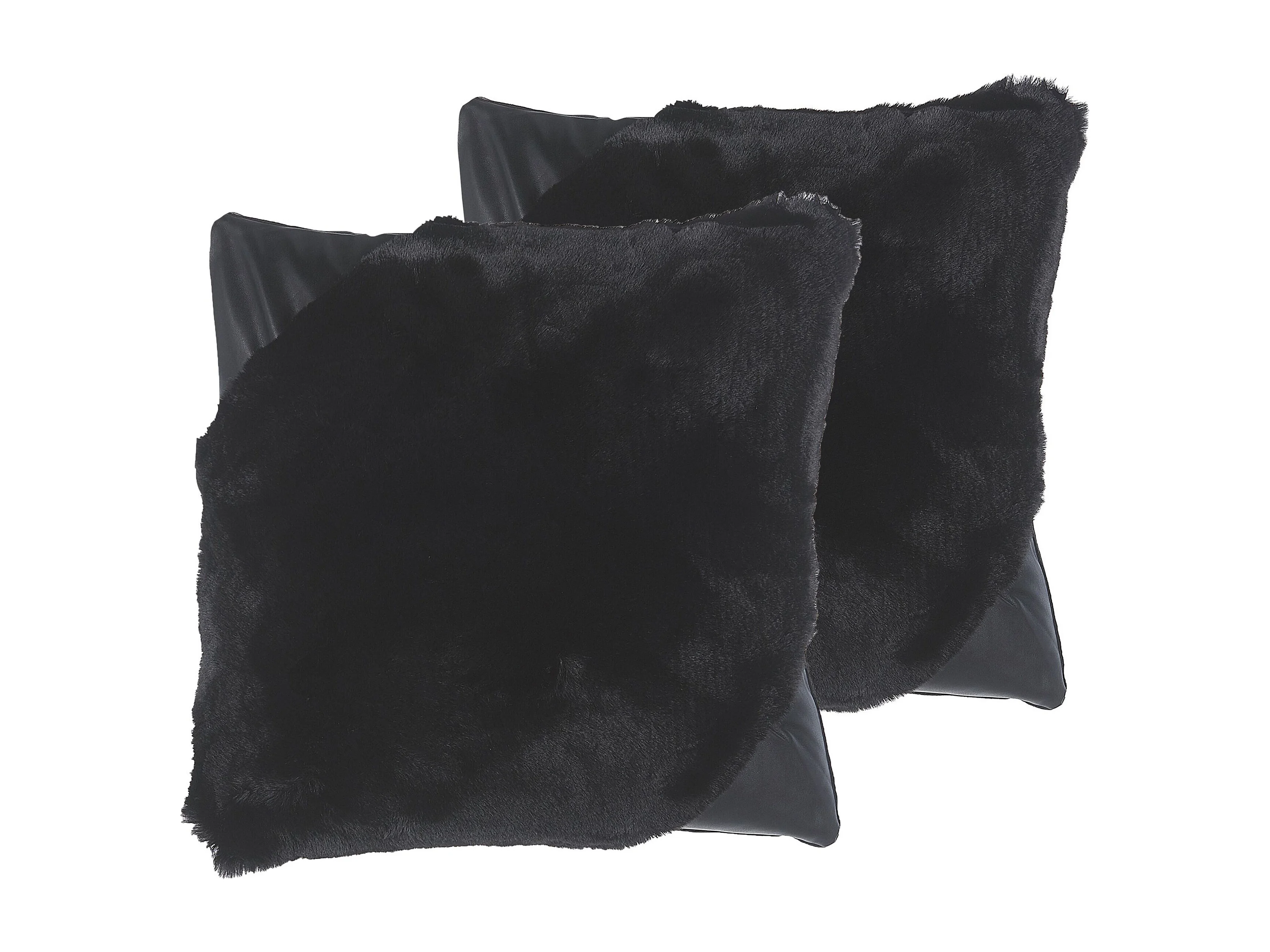 Lot de 2 coussins décoratifs EHNAR Bouclé 42 x 42 cm Noir Unicolore