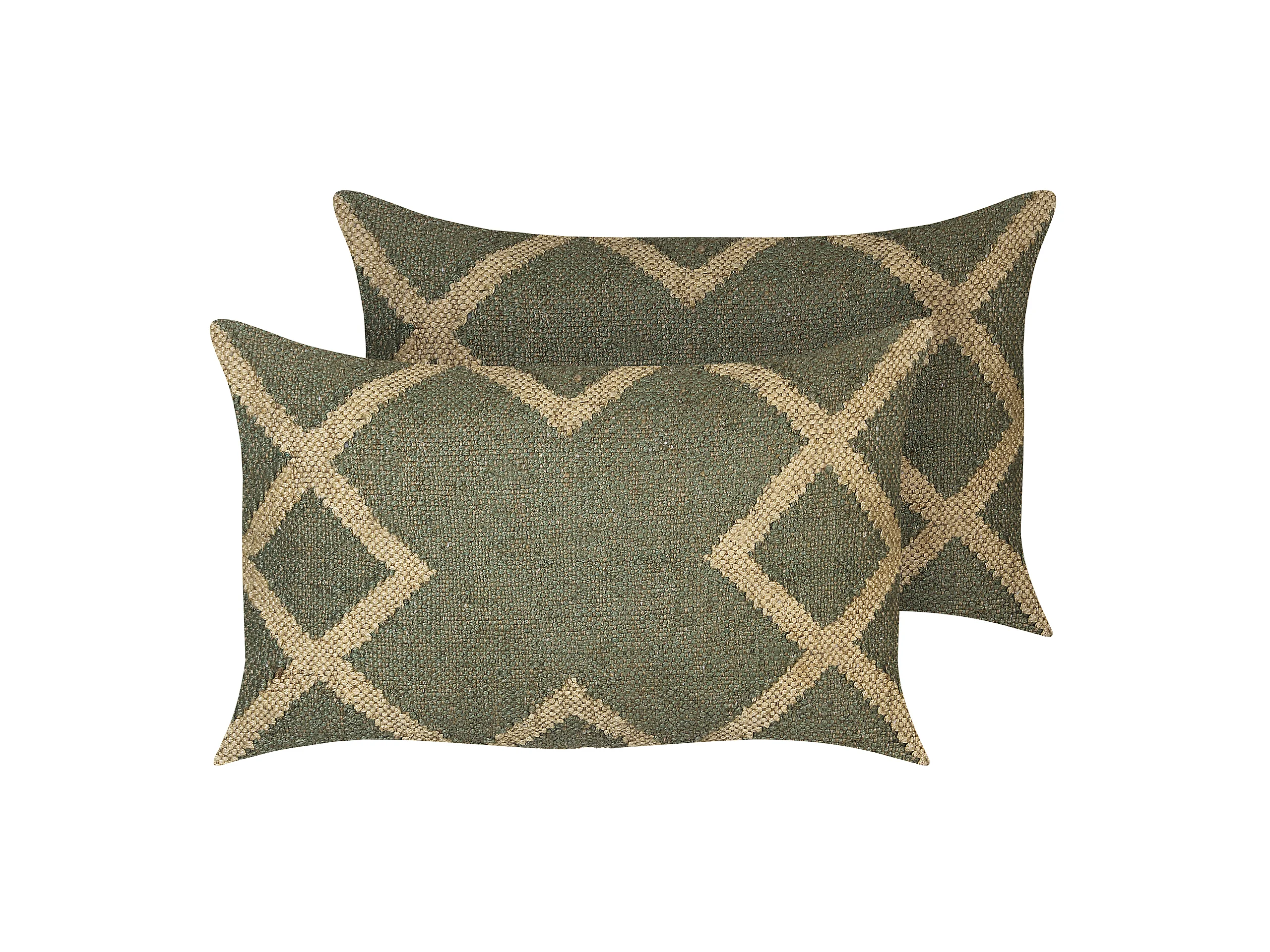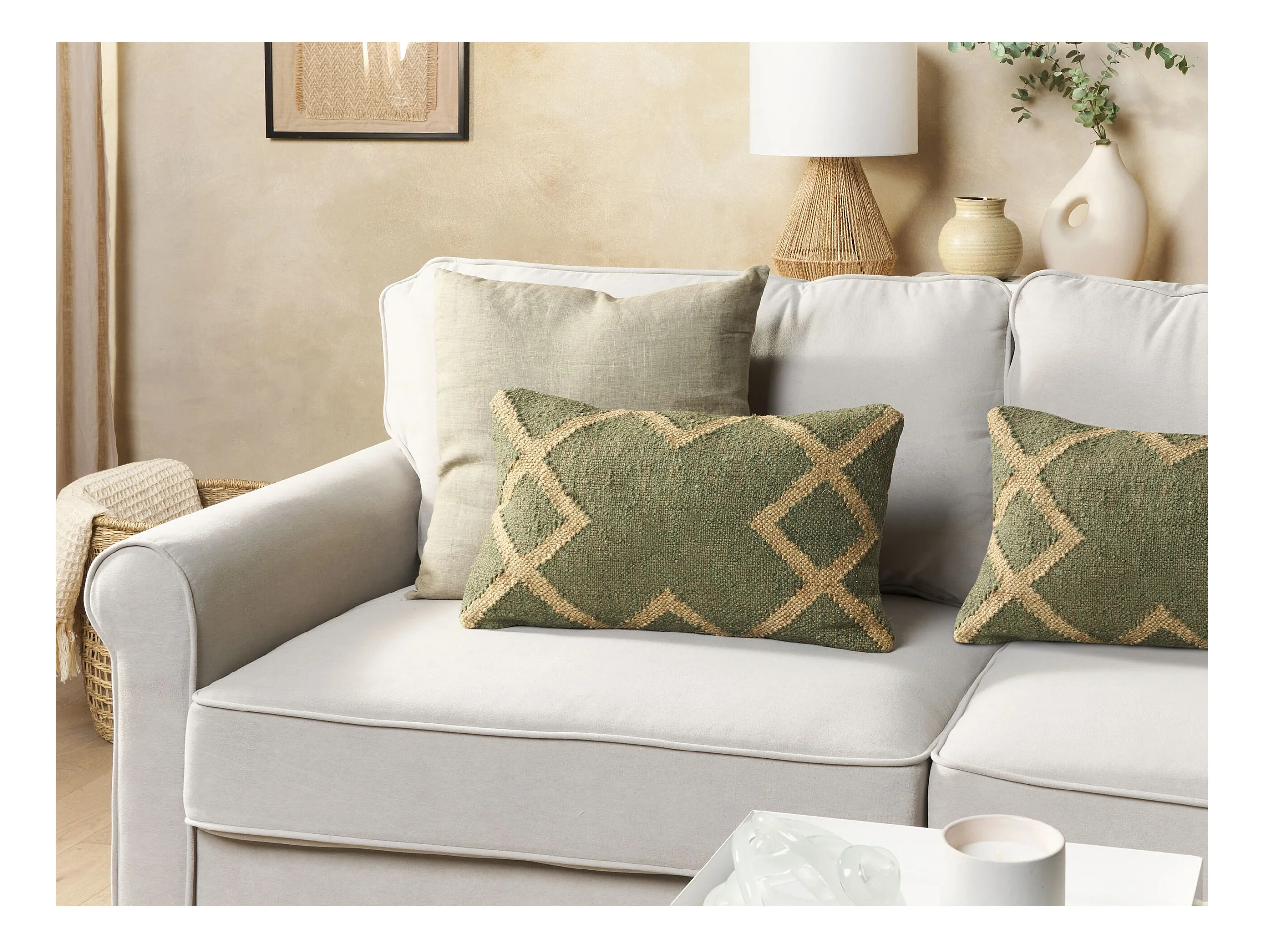 Lot de 2 coussins décoratifs GOPI Jute 30 x 50 cm Vert Motif oriental
