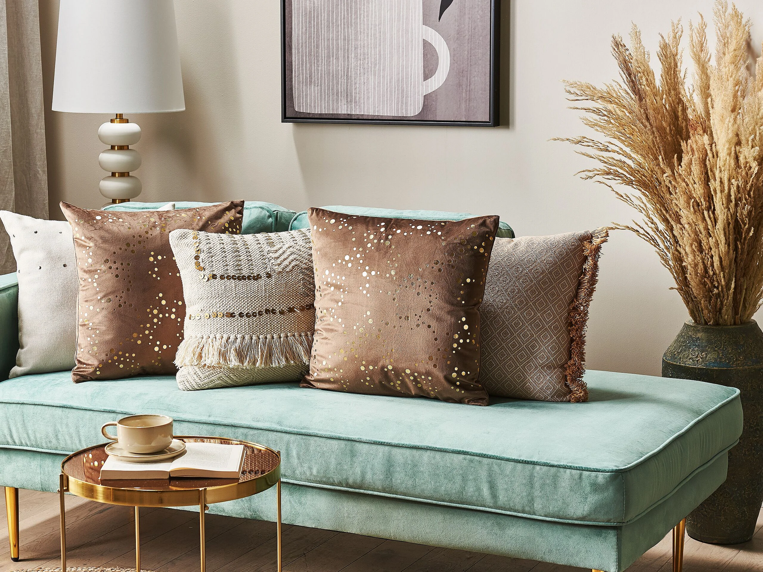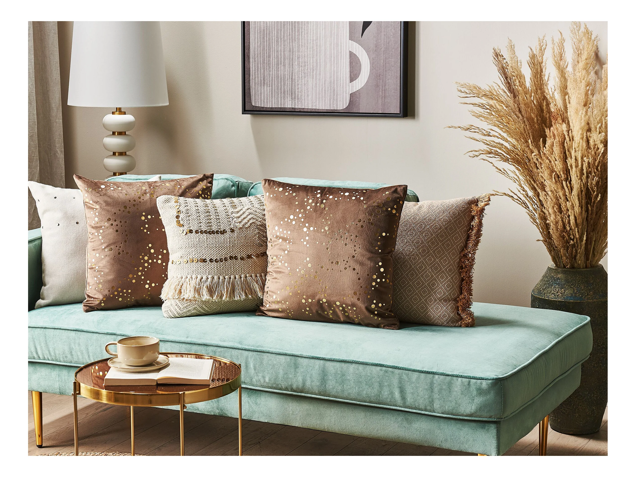 Lot de 2 coussins décoratifs POPPY Velours 45 x 45 cm Marron Motif abstrait